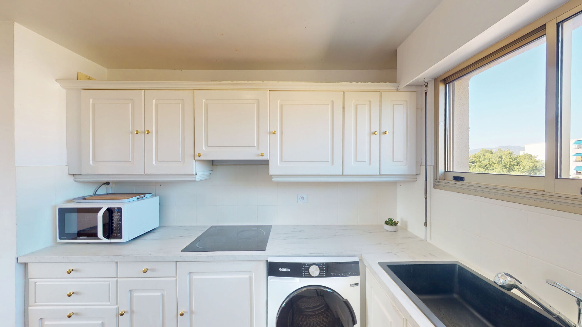 La cuisine équipée indépendante est parfaitement fonctionnelle.
