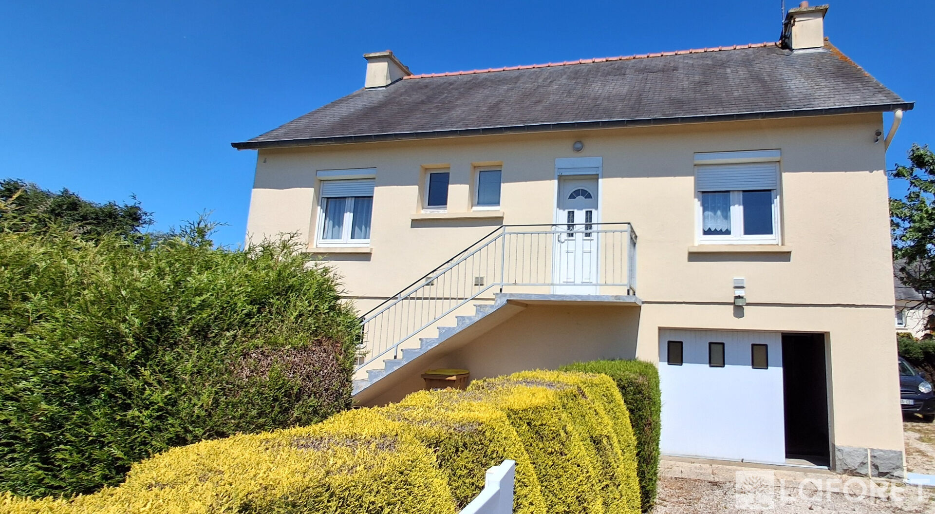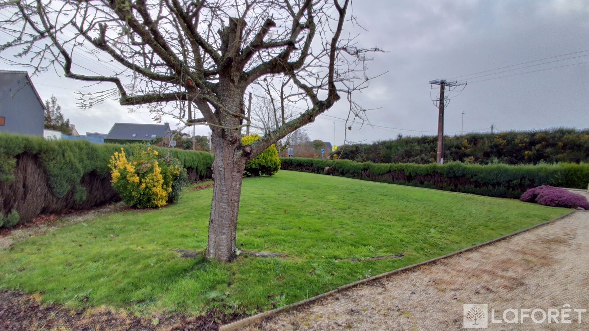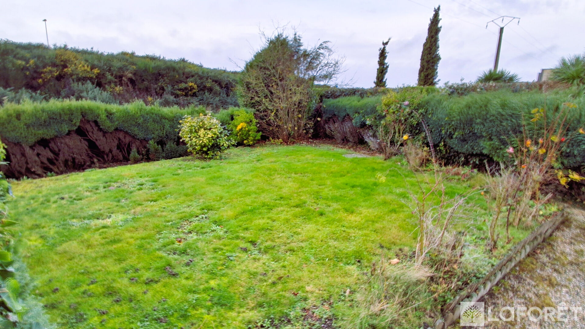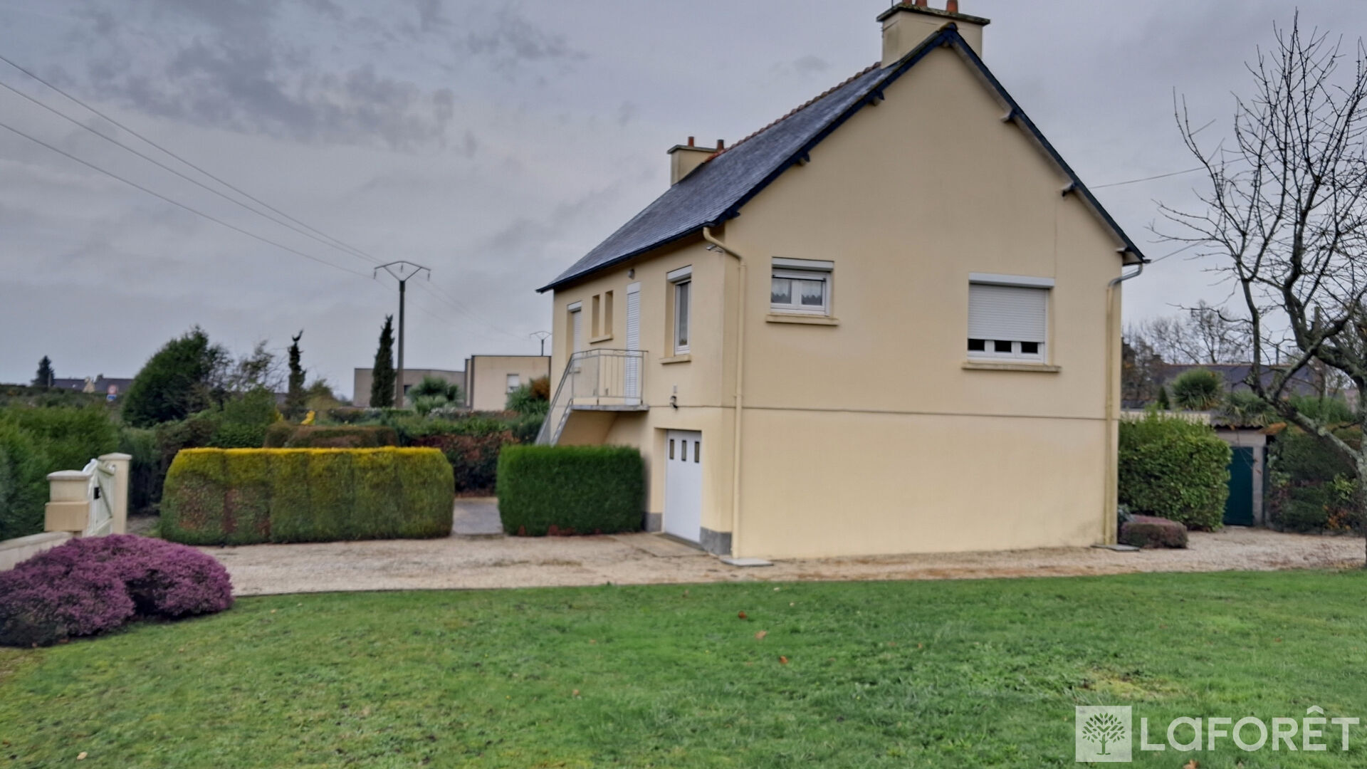 Le terrain d'environ 1000 m2 offre un grand jardin arboré, avec un garage supplémentaire et dépendances.