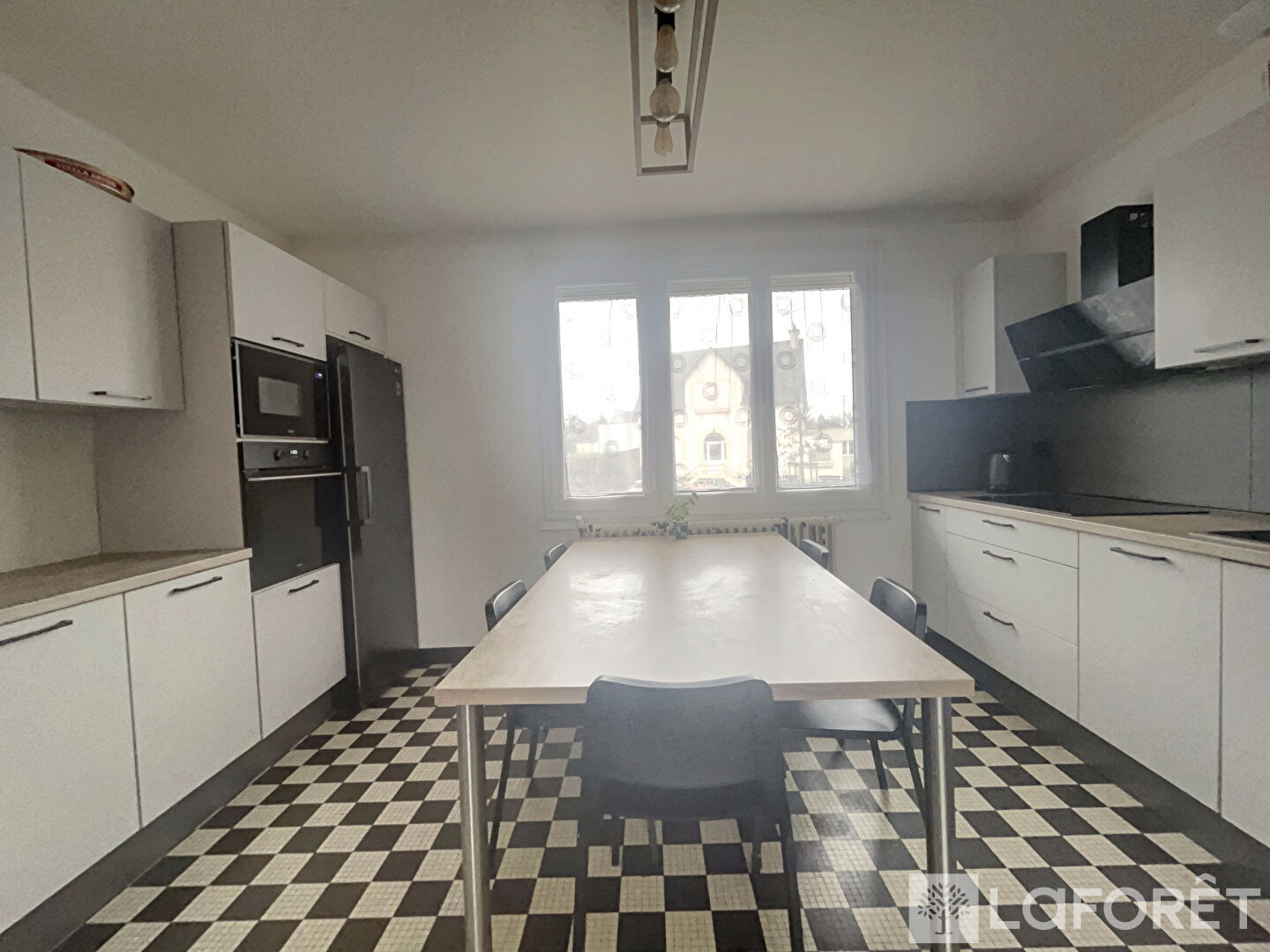Le rez-de-chaussée offre une cuisine neuve, lumineuse et entièrement équipée, une salle de séjour de 36 m² avec poêle à pellets, deux chambres, un WC et une salle de bains. À l'étage se trouvent trois chambres supplémentaires, une salle de bains et un bureau, offrant des espaces de nuit et de travail bien distincts. Le sous-sol complet comprend garage, buanderie et chaufferie, apportant un confort pratique et des rangements conséquents.