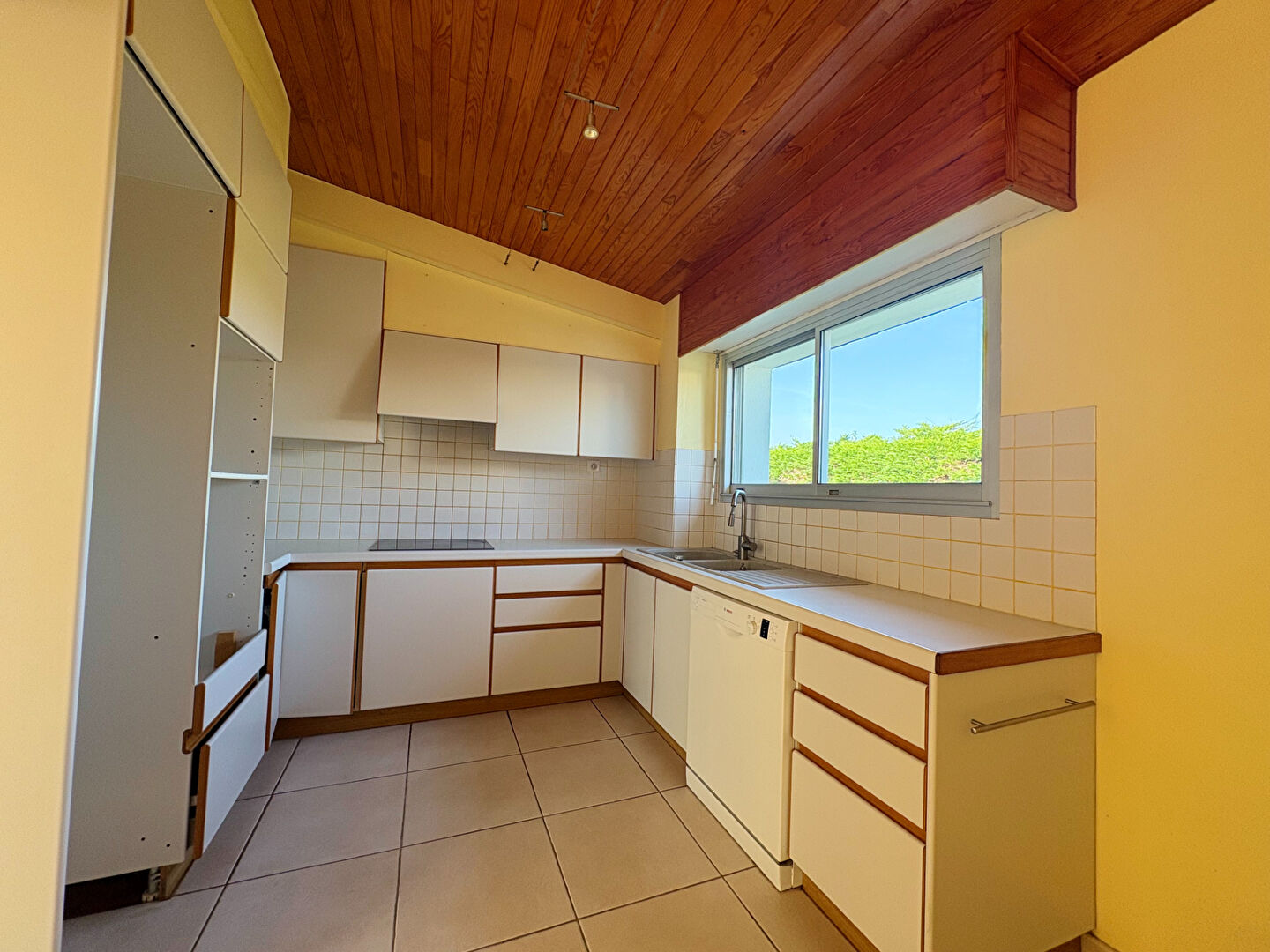 La maison s'ouvre sur une grande pièce de vie de 39,89 m², baignée de lumière grâce à son exposition sud, la pièce dispose d'une cheminée et d'un accès ouvert à la cuisine.