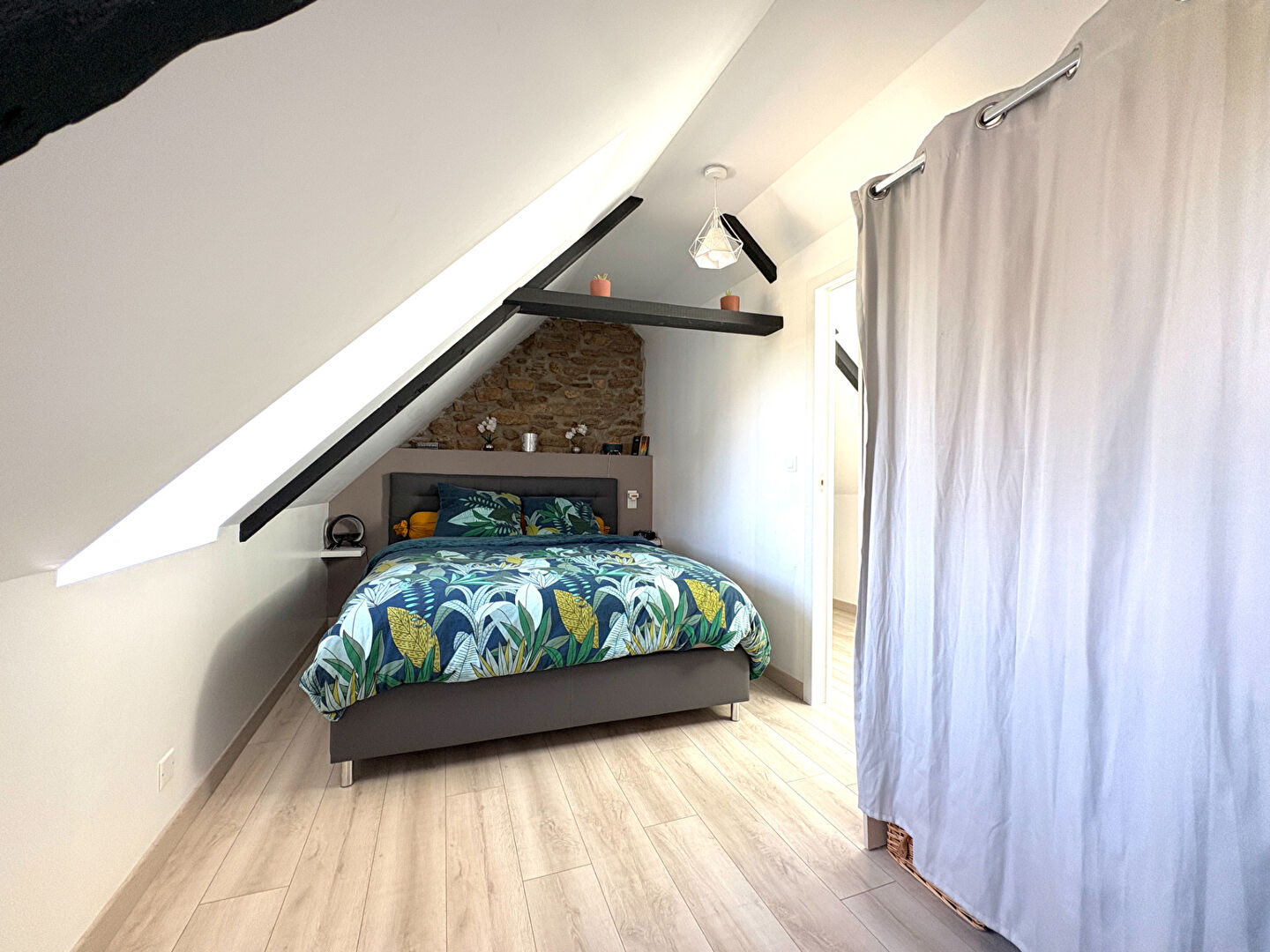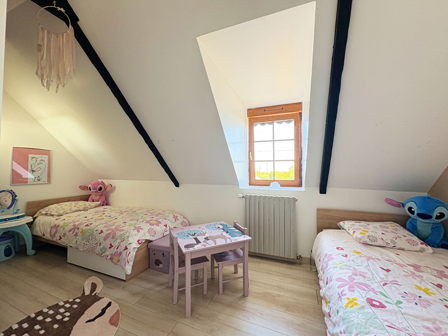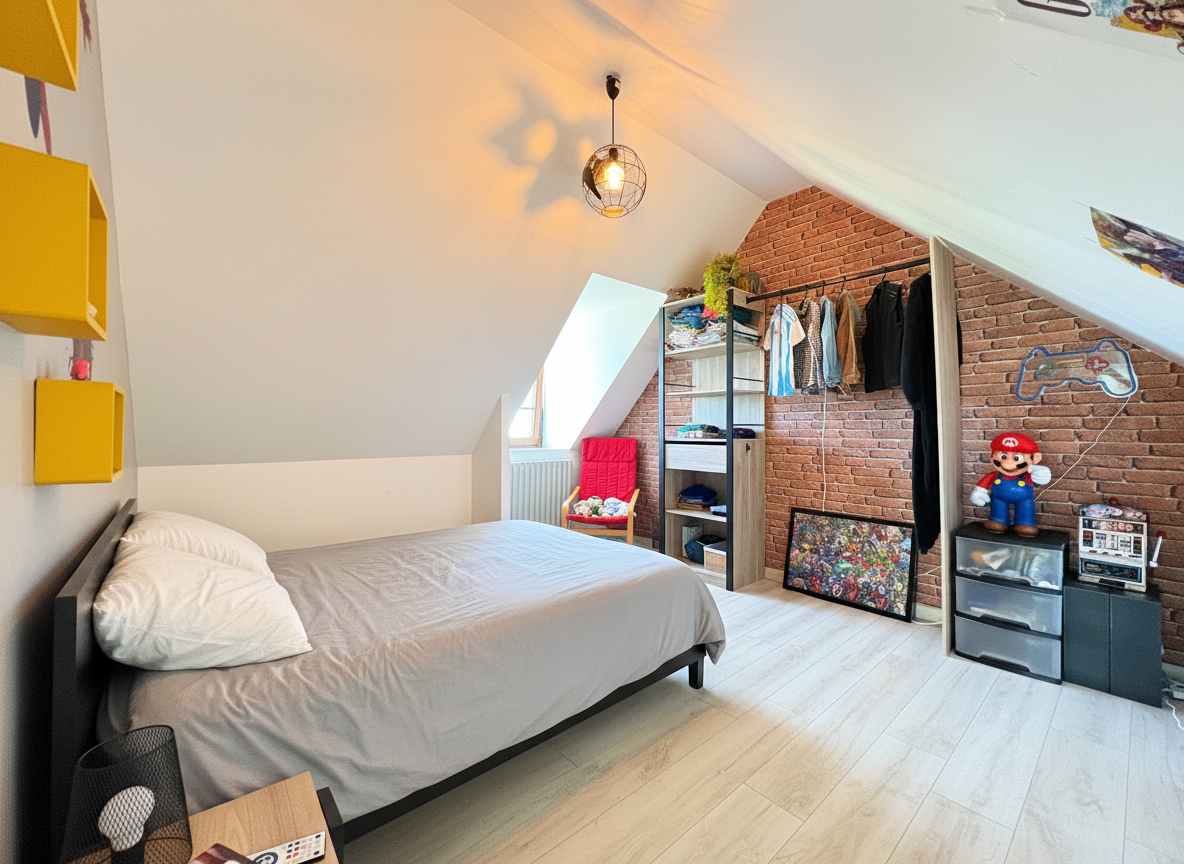 À l'étage, le palier dessert trois chambres, offrant une distribution fonctionnelle.