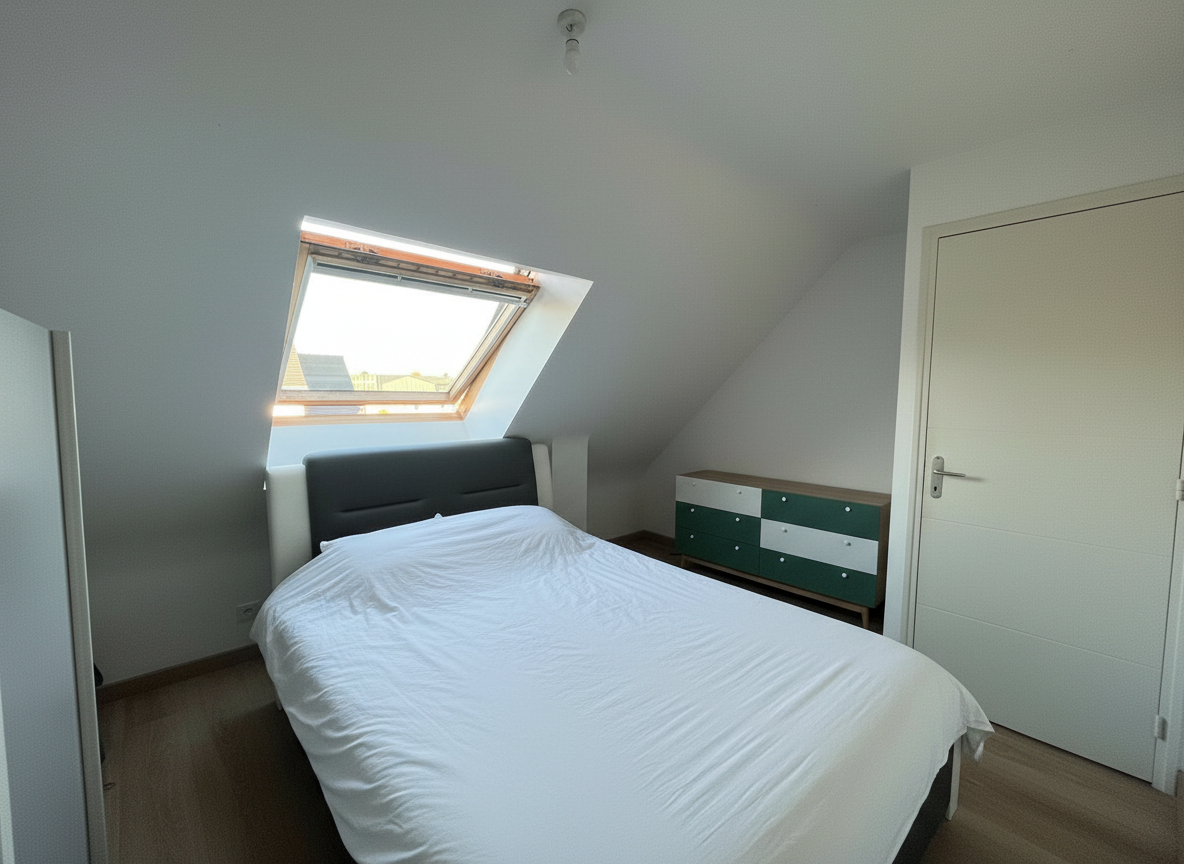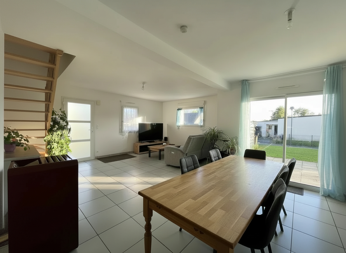 Au rez-de-chaussée, elle offre un salon-séjour lumineux, une cuisine avec accès direct à la terrasse et au jardin, un WC ainsi qu'un garage pouvant accueillir une voiture ou servir de rangement.