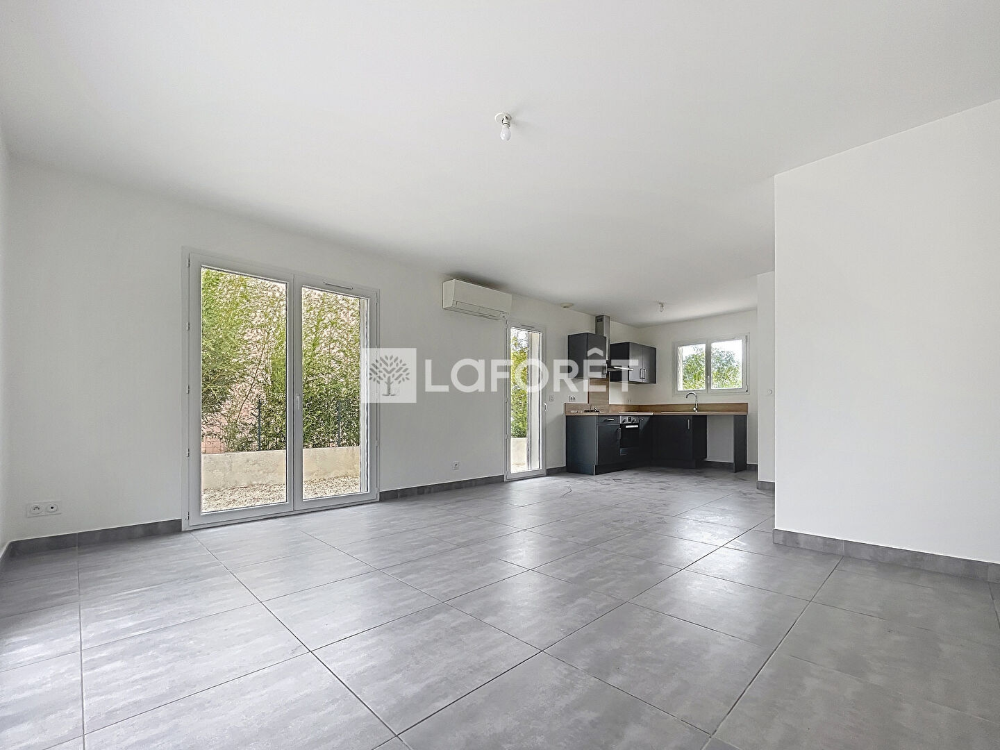 La pièce de vie lumineuse avec cuisine ouverte est parfaite pour recevoir.