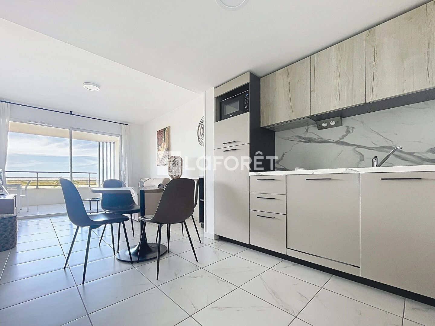 Avec sa climatisation réversible gainée et sa loggia de 17.90 m² offrant une vue imprenable sur l'étang de Canet et la mer au loin, cet appartement est un véritable havre de paix.