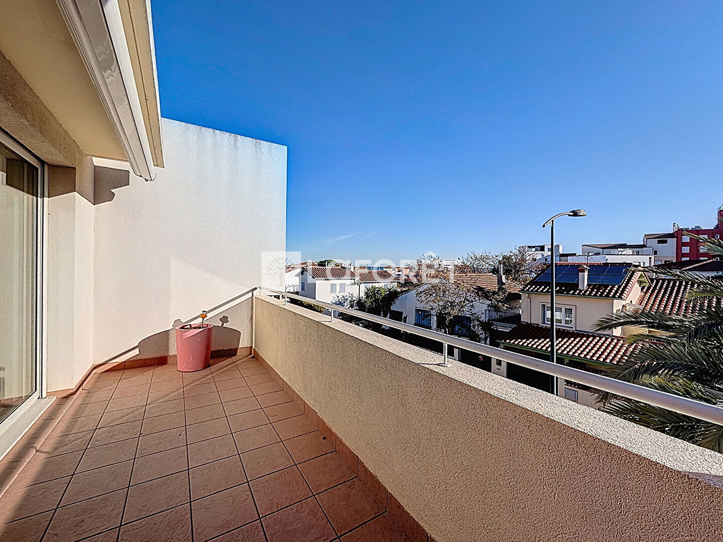 Niché au deuxième et dernier étage d'une résidence de 2005, il dispose d'une terrasse ouverte de 10 m² offrant une vue lointaine sur la mer.
