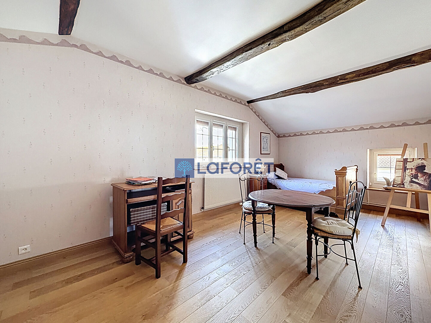 À l'étage, vous découvrirez deux chambres spacieuses de plus de 20 m², dont une en mezzanine.