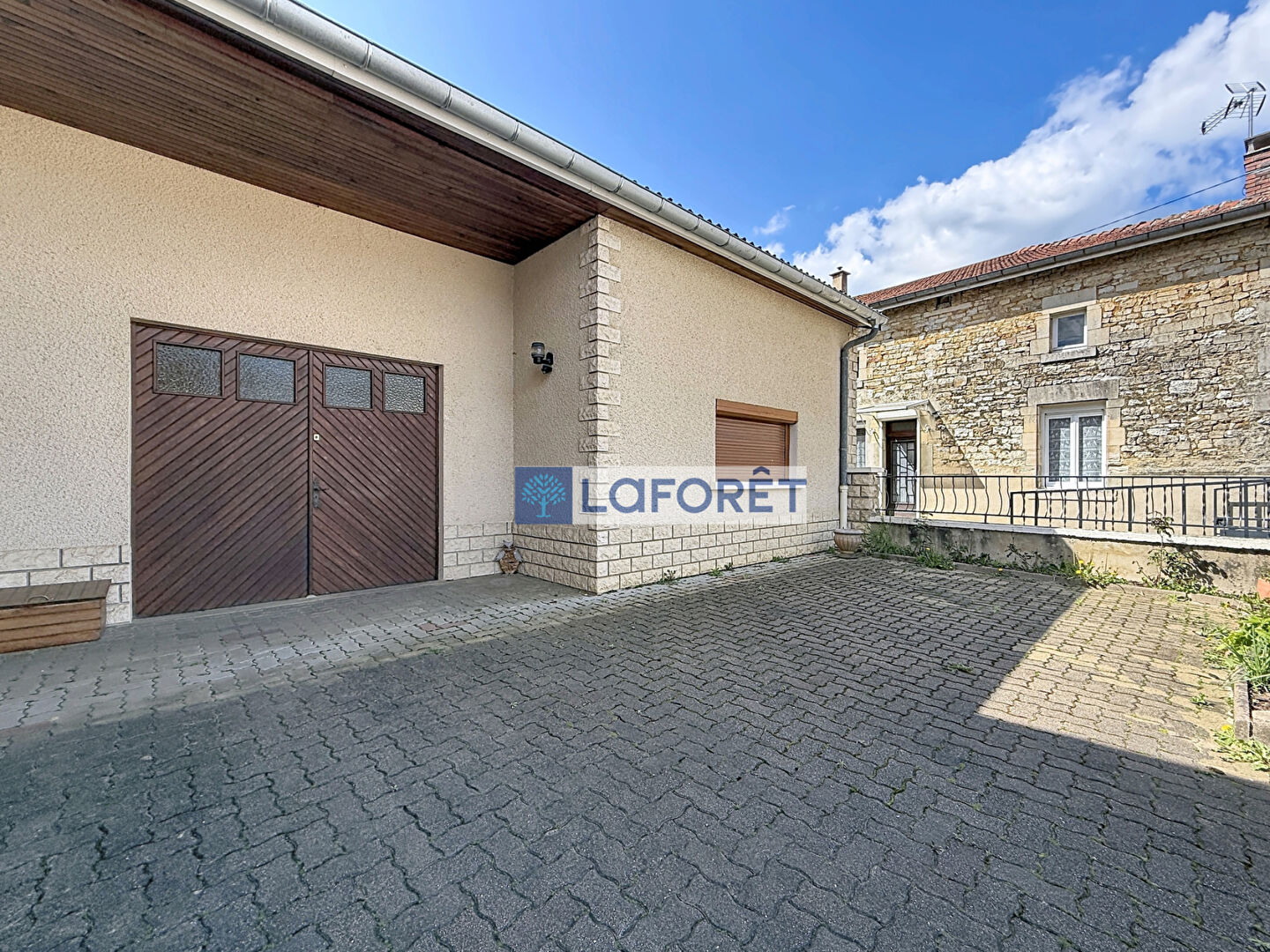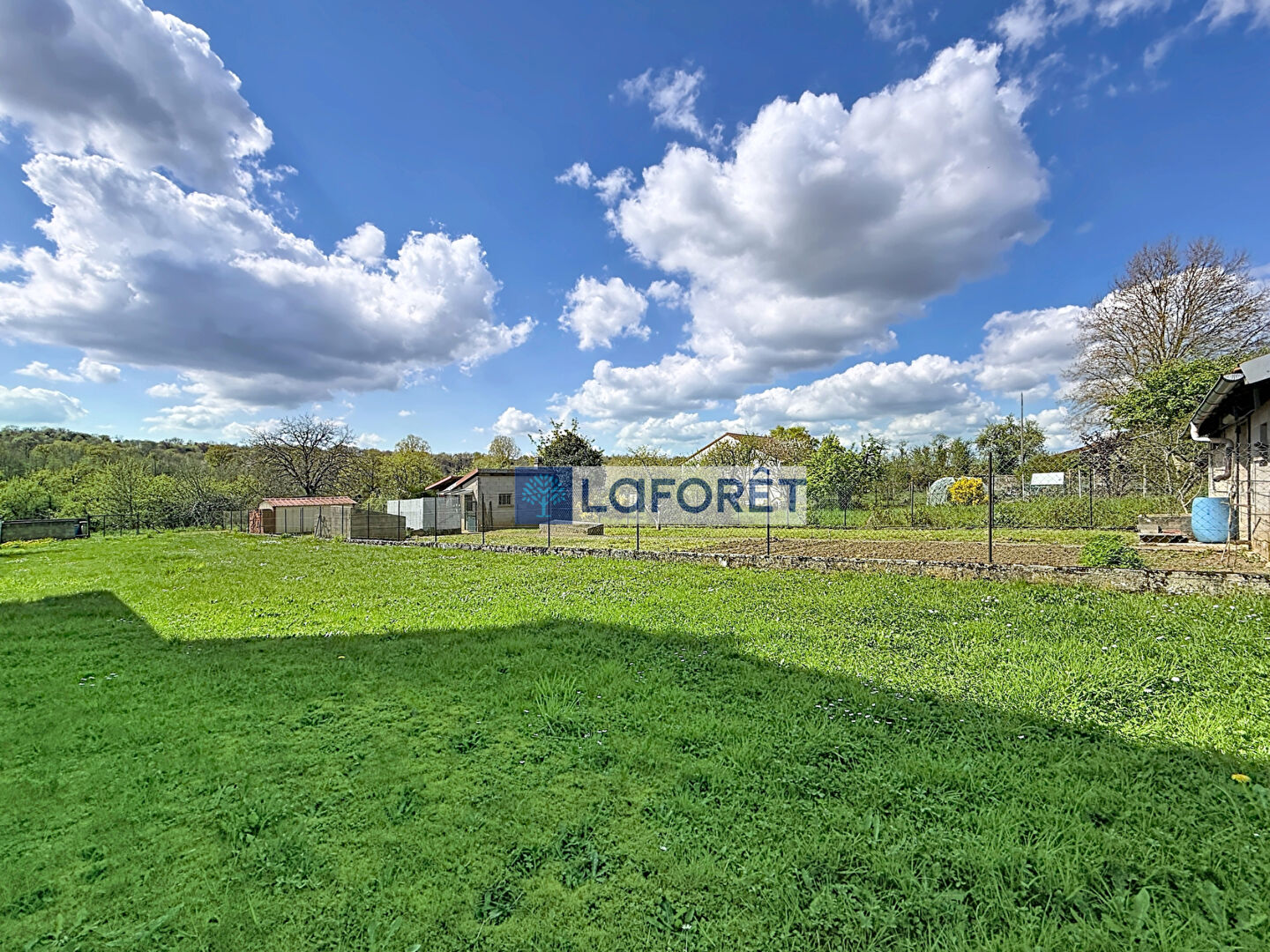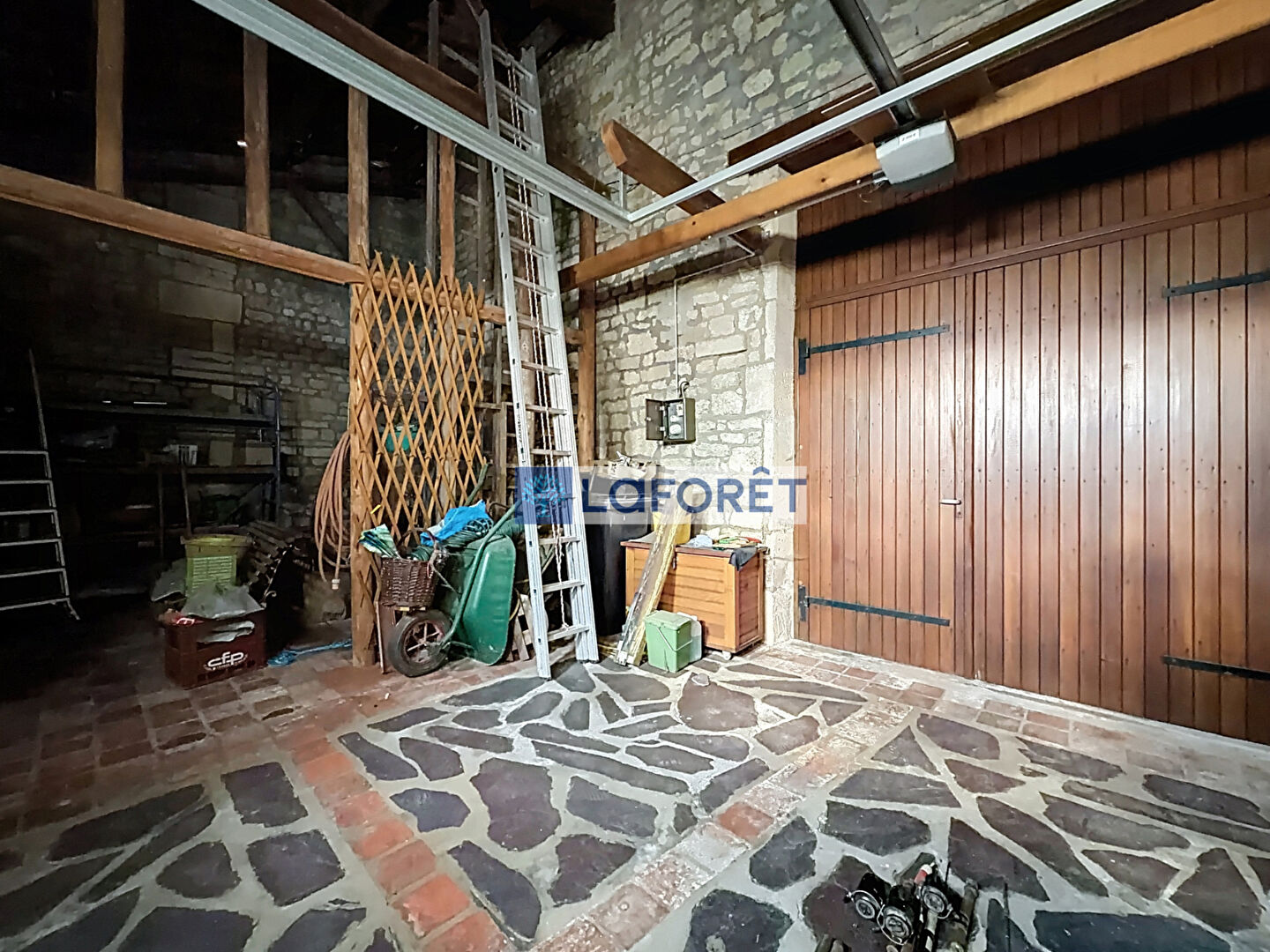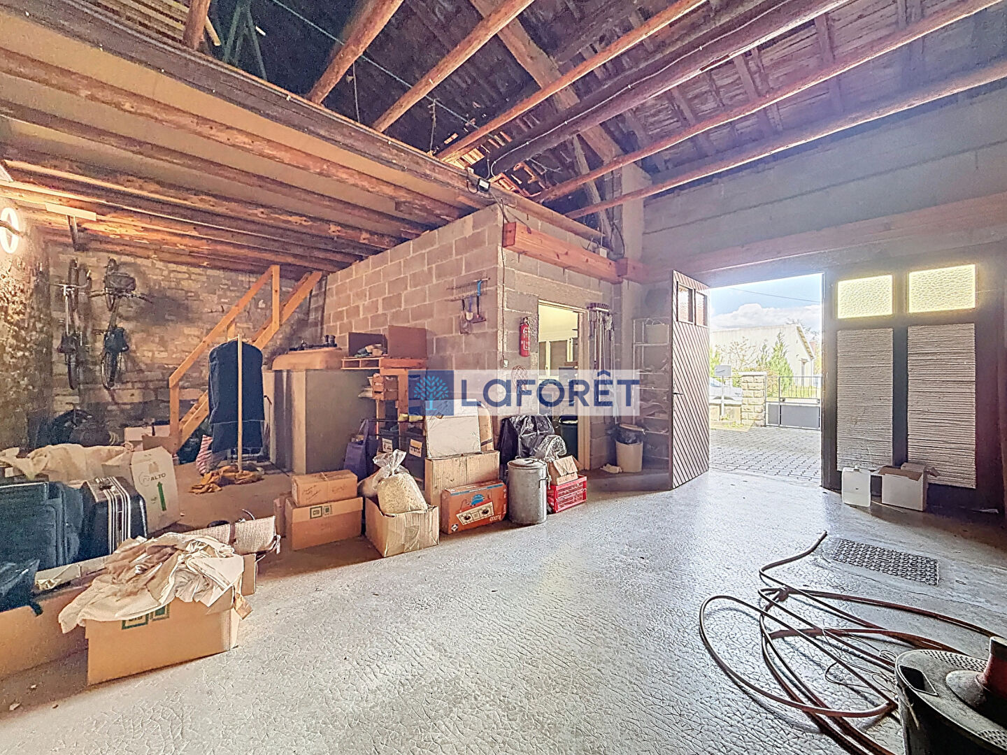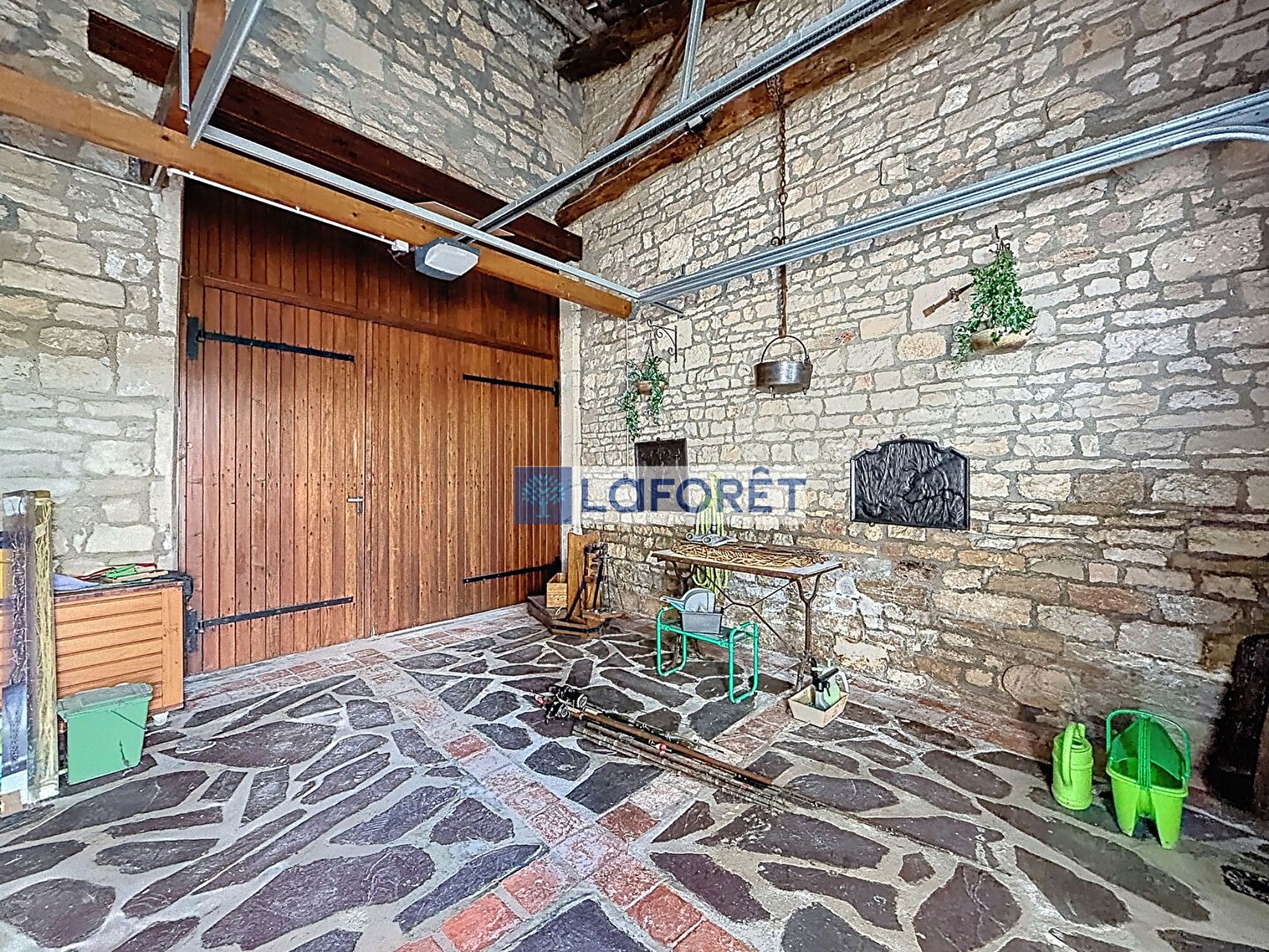 Vous profiterez également d'un bûcher couvert de 40 m², offrant un accès à une magnifique terrasse, elle-même ouverte sur un joli jardin clos.