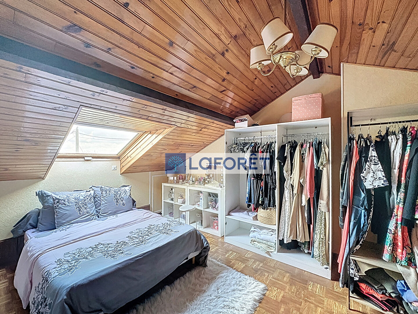Au deuxième étage, vous trouverez une chambre ainsi qu'un dressing pouvant servir de bureau ou de seconde chambre.