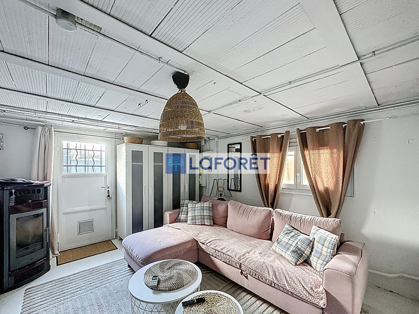 Il se compose, au premier étage d'une entrée, une cuisine récente équipée, un séjour/salle à manger de 36 m² avec insert bois, une chambre, une salle d'eau et WC.