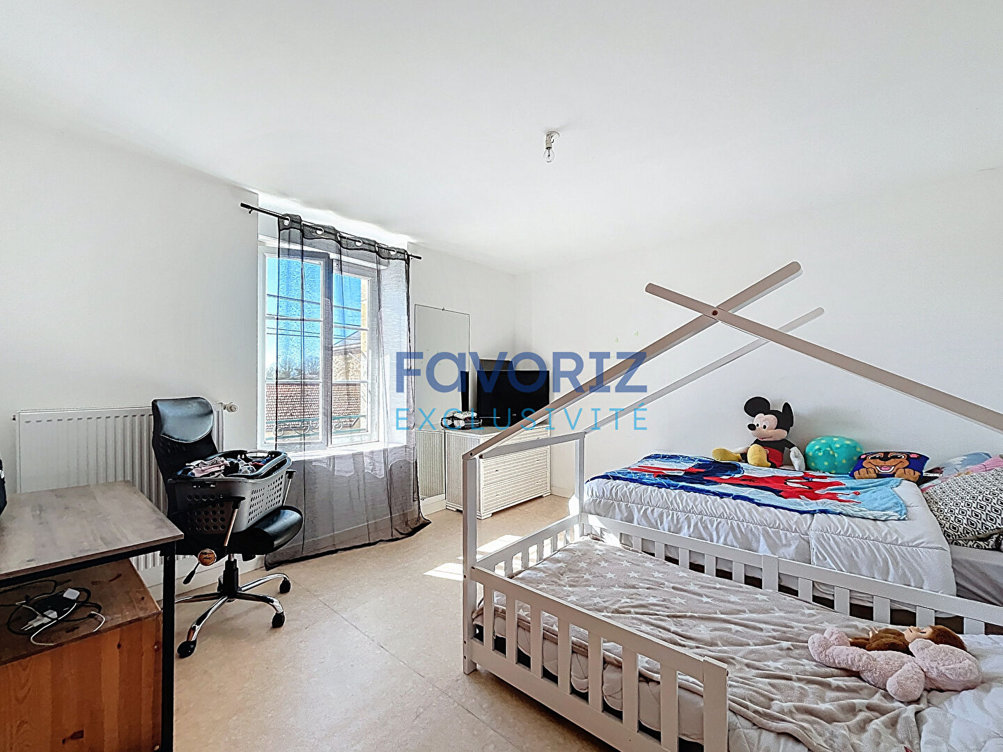 A l'étage, 3 chambres dont une avec rangements, une salle de bains, un wc séparé.