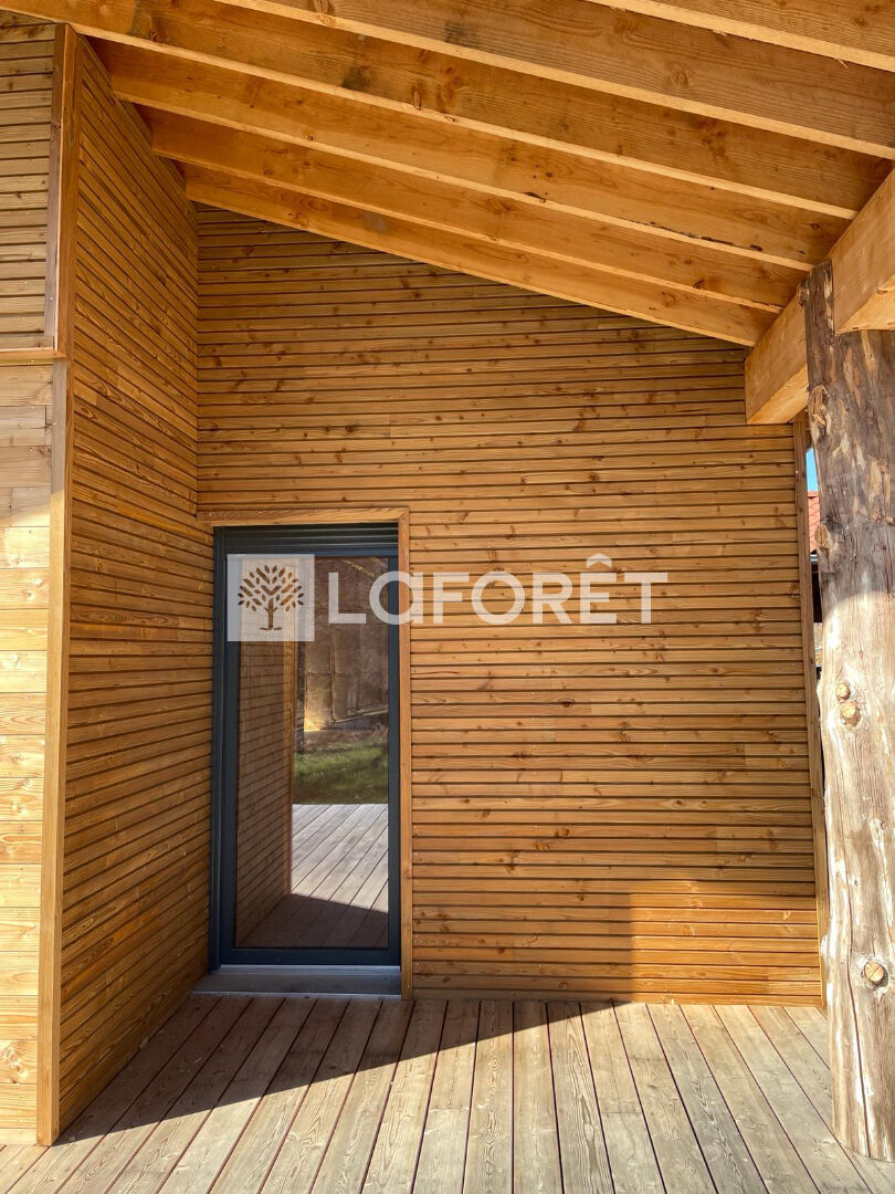Conçue et réalisée avec des prestations haut de gamme : bois Douglas de la région, menuiseries extérieures en Aluminium à rupture de pont-thermique, volets roulants en bois et coulissants électriques sur la façade, grandes terrasses extérieures en bois, garde-corps, accès voitures compacté, 1 parcelle avec un puits et une mare, les 2 sont arborées.