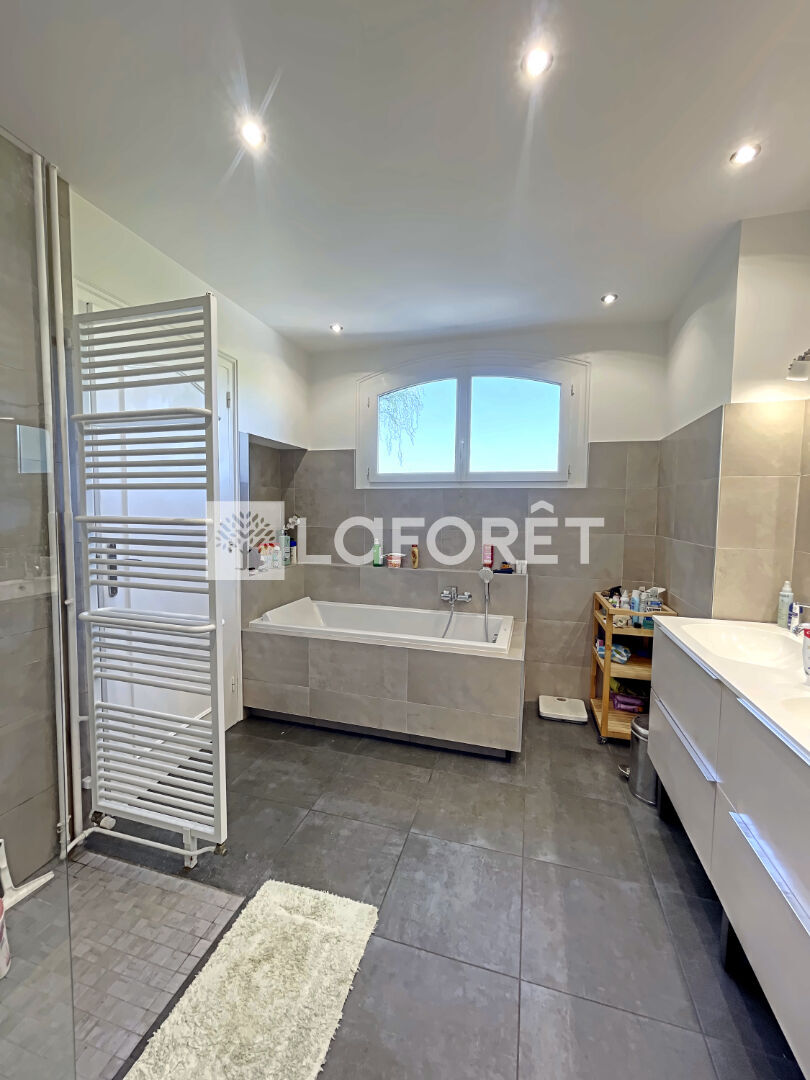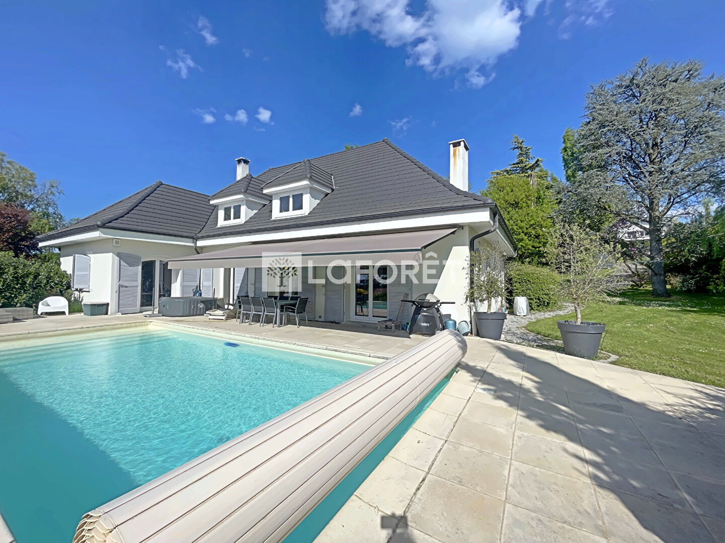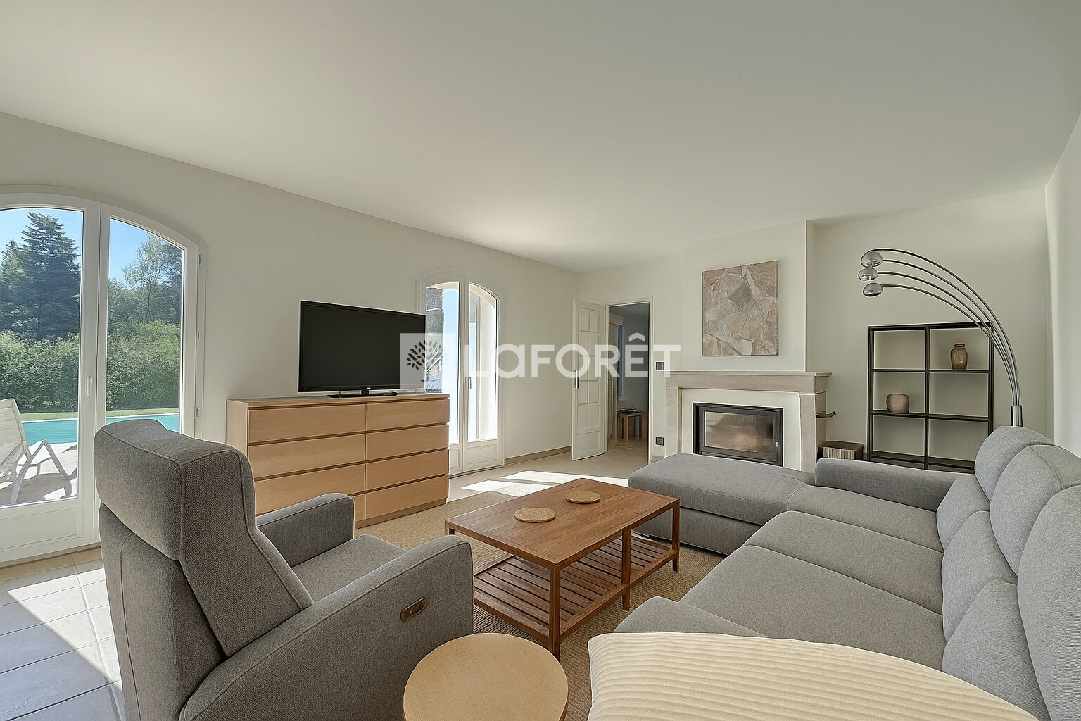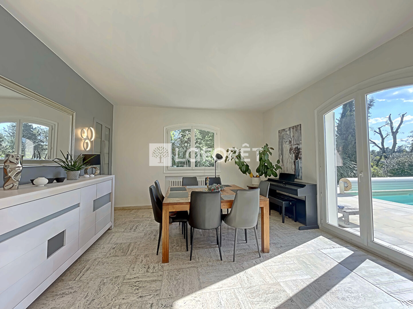 Grande pièce de vie lumineuse ouverte sur la terrasse, cuisine équipée moderne, 6 chambres dont suite parentale, bureau et espaces détente.