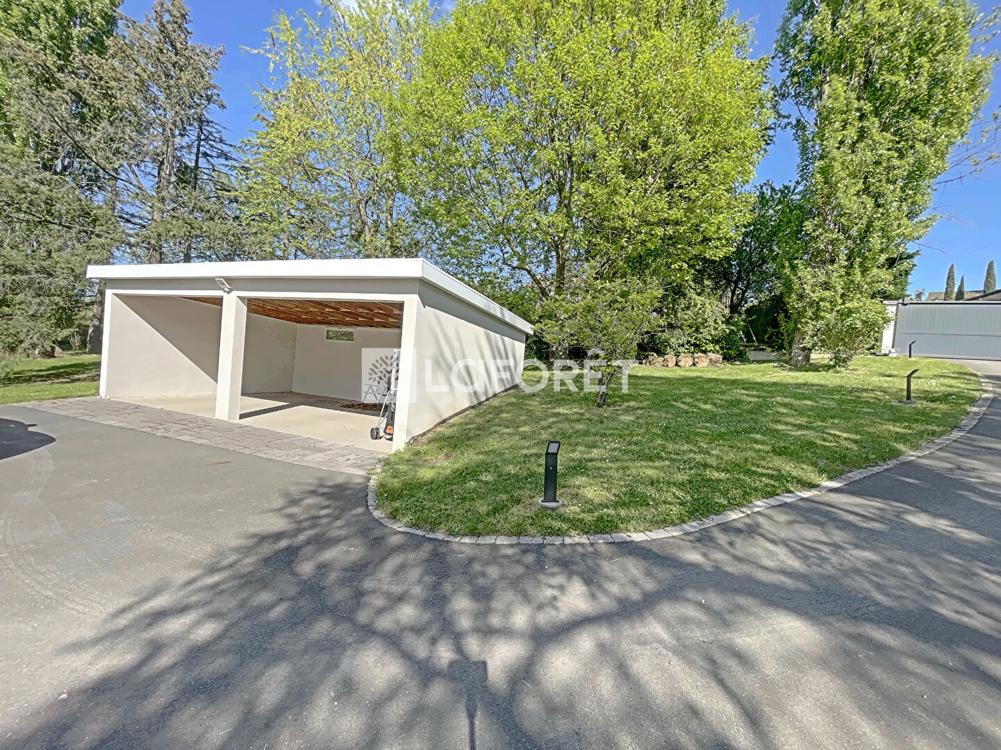 Extérieurs soignés : jardin plat et arboré, garage double + carport, sans vis-à-vis.