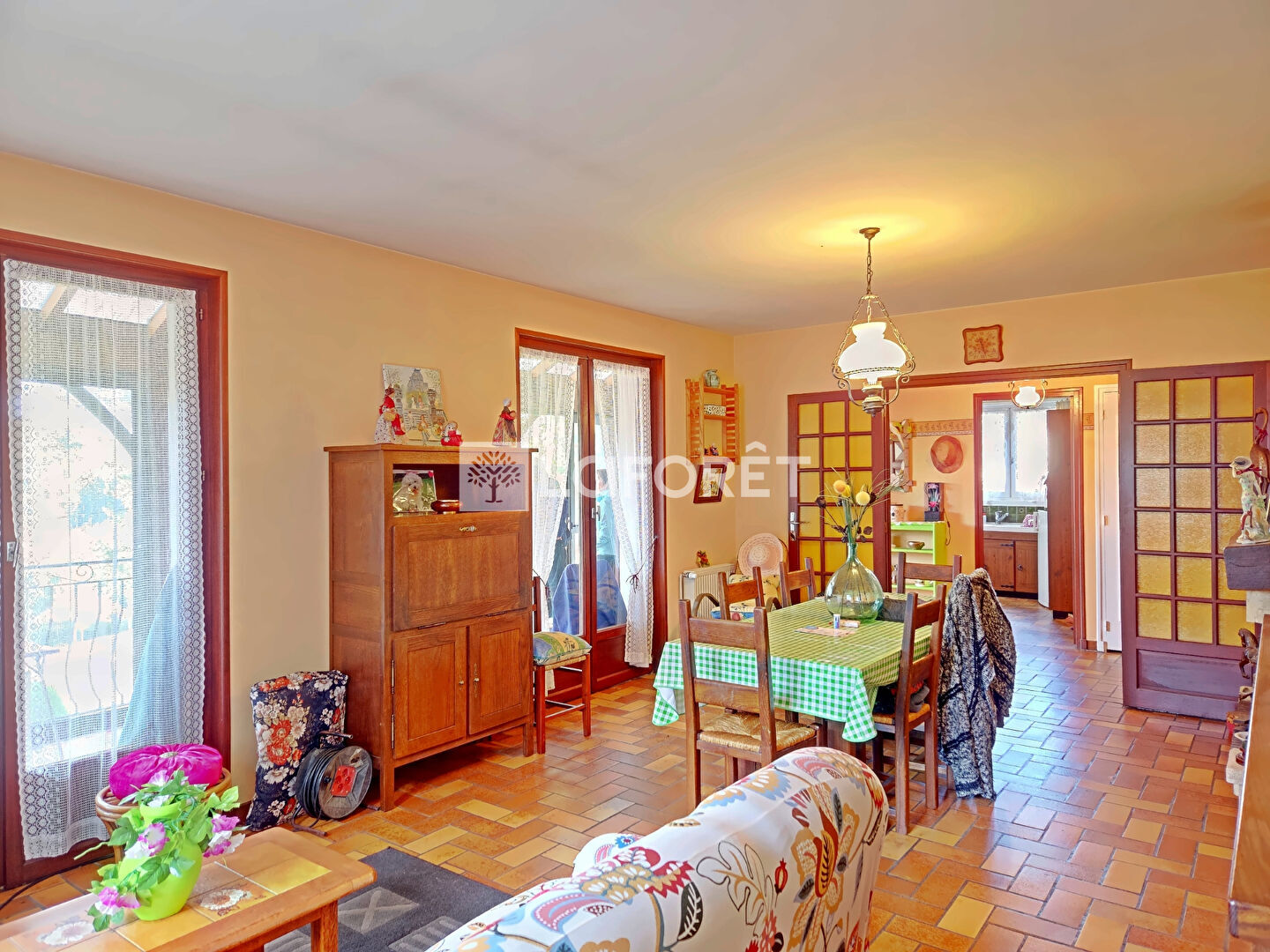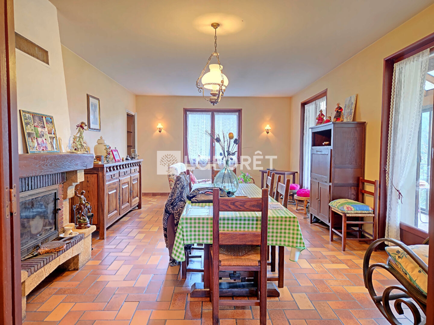 Séjour lumineux de 26 m² avec cheminée à foyer fermé,