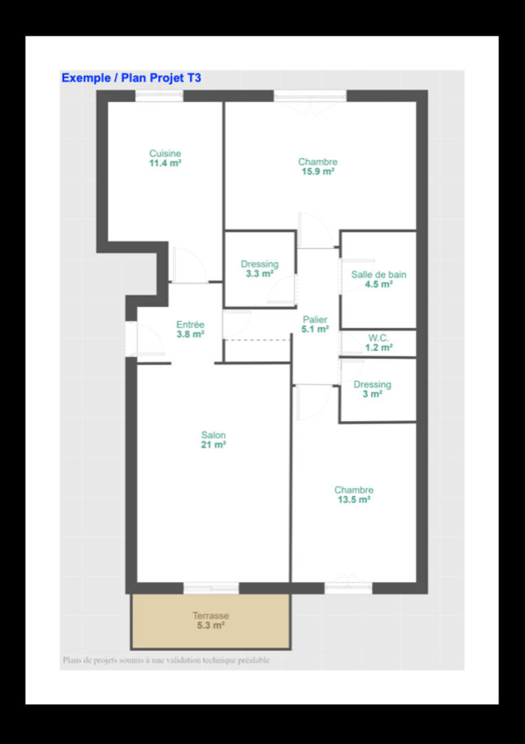 84 m² • 3 pièces • 2 chambres