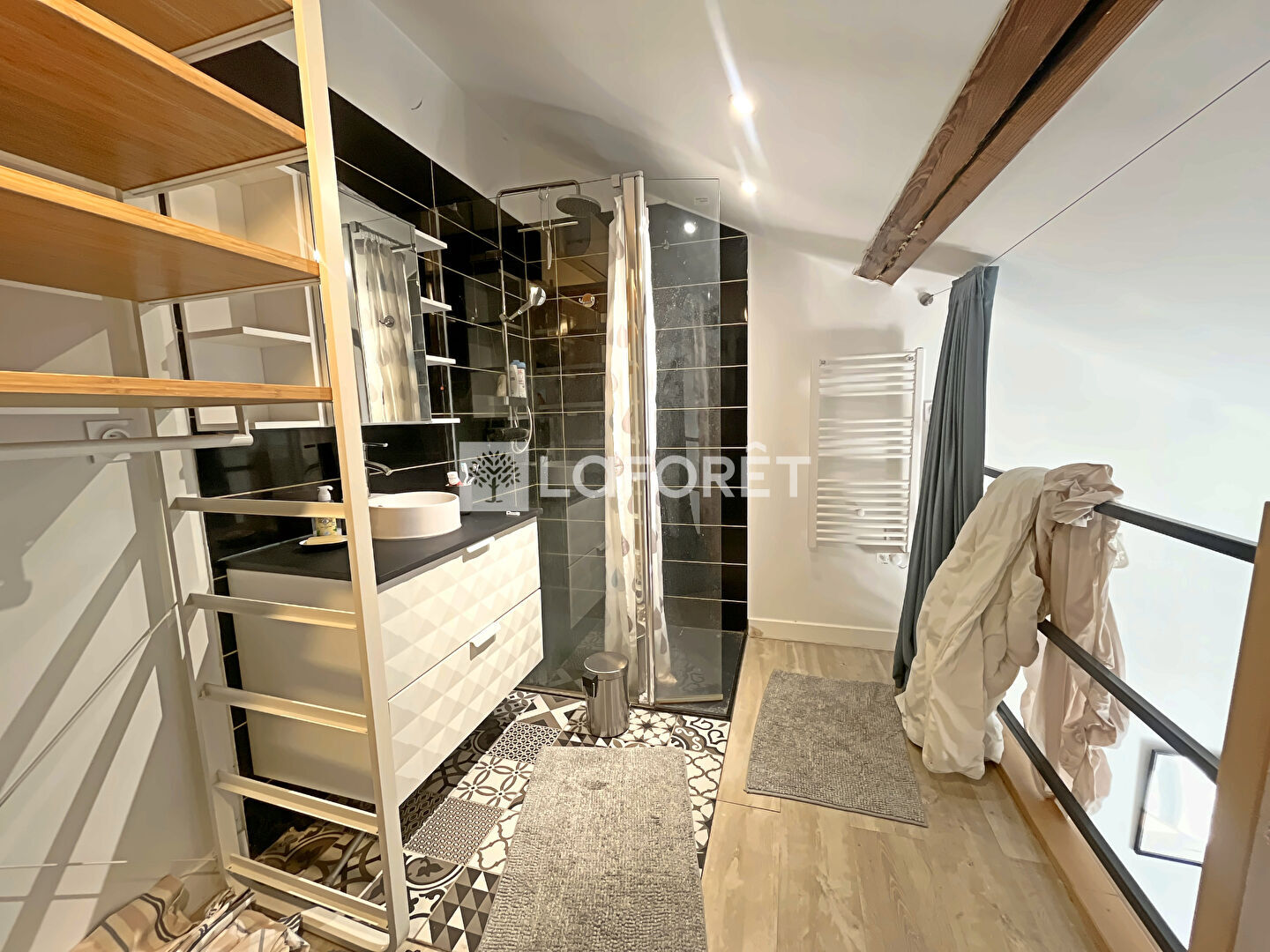 Cet appartement est en duplex, vous retrouverez au rez de chaussée une partie cuisine avec lave vaisselle, four, micro-onde, etc... Une partie salon avec canapé et table basse. À l'étage vous retrouverez une partie chambre avec lit double et un espace salle d'eau avec cabine de douche et vasque.