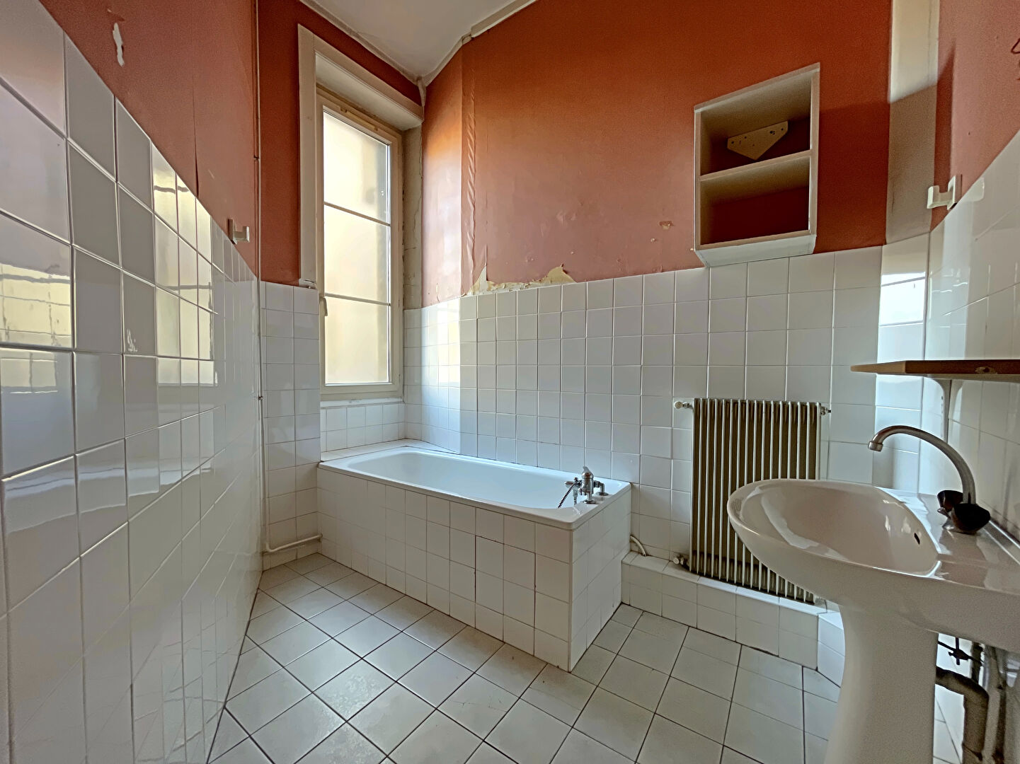 Salle de bain avec baignoire, vasque et miroir