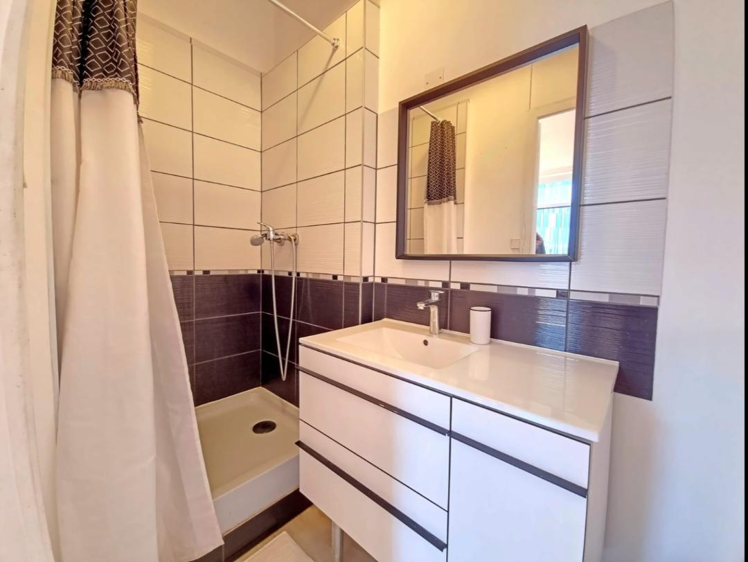 L'appartement se compose d'une pièce de vie lumineuse orienté coté Est. Une cuisine avec balcon aménagé et équipée d'un micro-onde, de plaques de cuisson, ainsi que de nombreux rangements. Une chambre composé d'un lit double et d'un bureau. Une salle d'eau avec vasque, miroir et d'une douche.