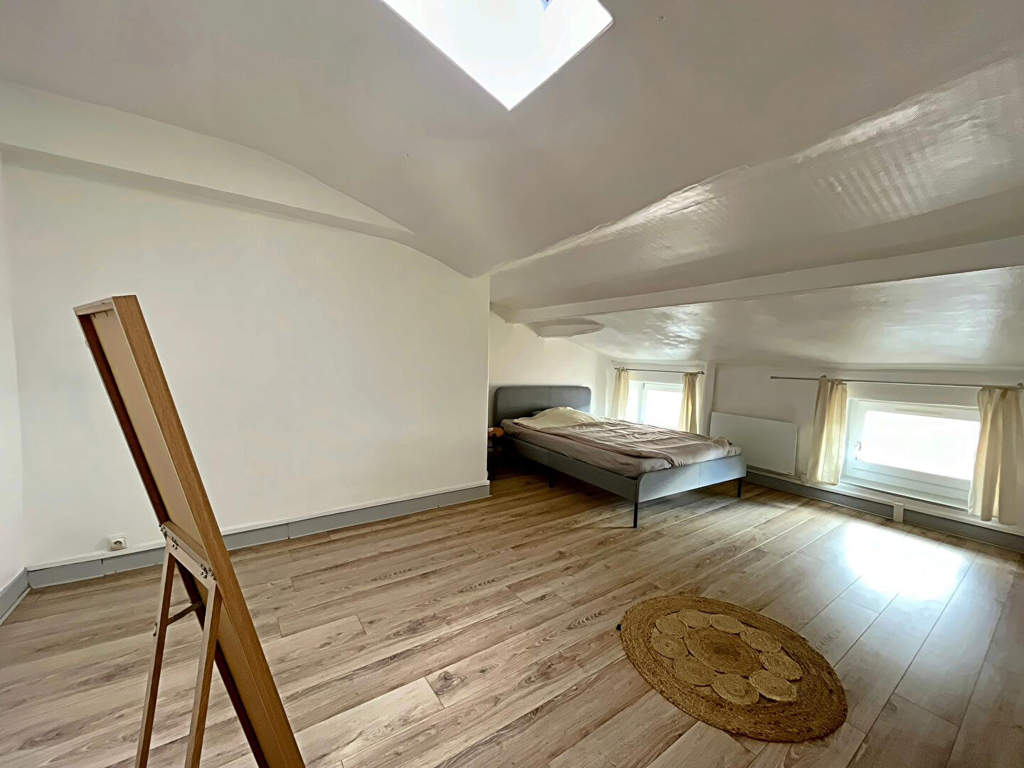 Situé au 2ème étage d'une petite copropriété l'appartement se compose d'un espace cuisine ouvert sur une grande pièce de vie. Une salle de bain avec baignoire, vasque, rangements et WC