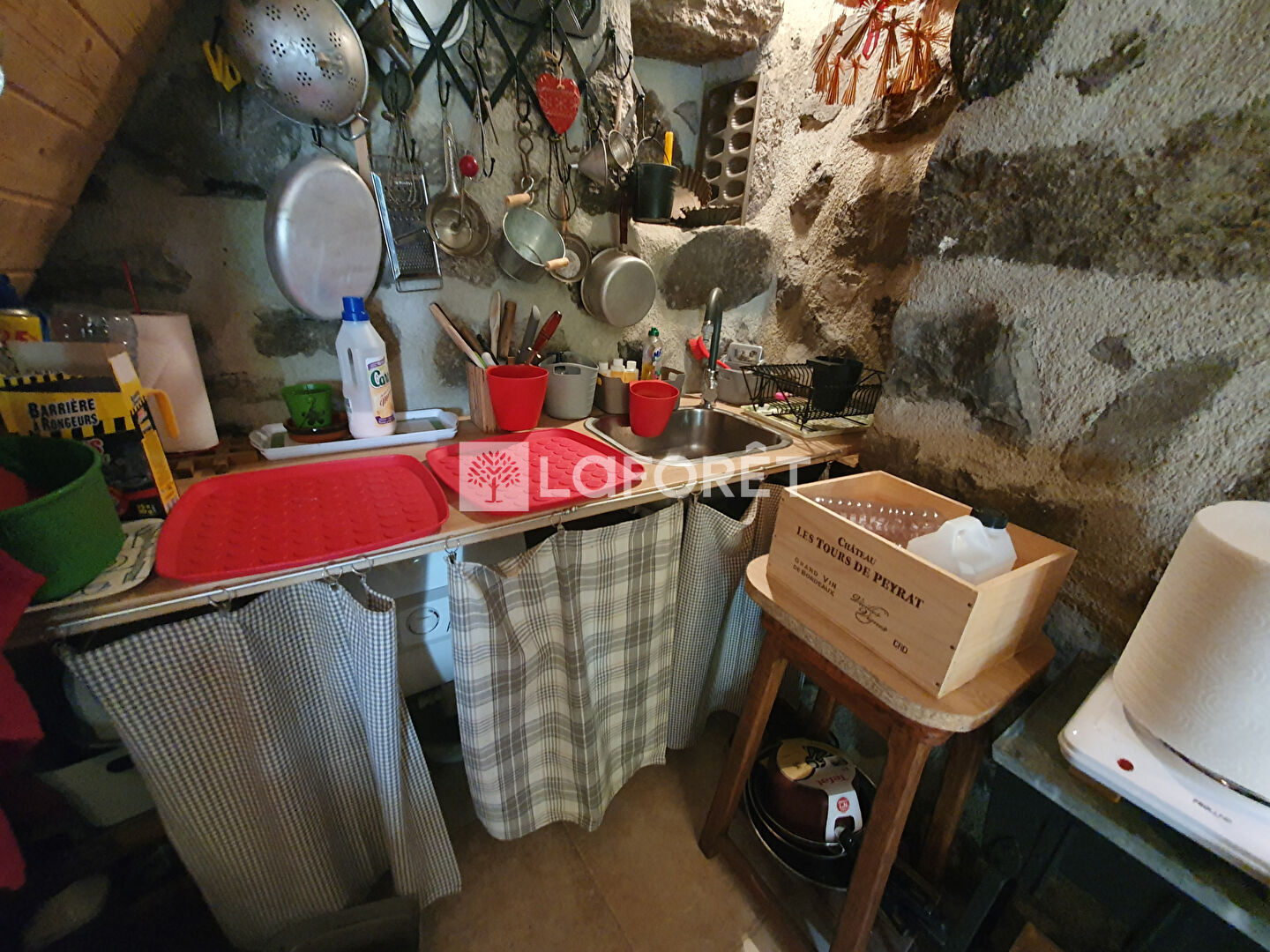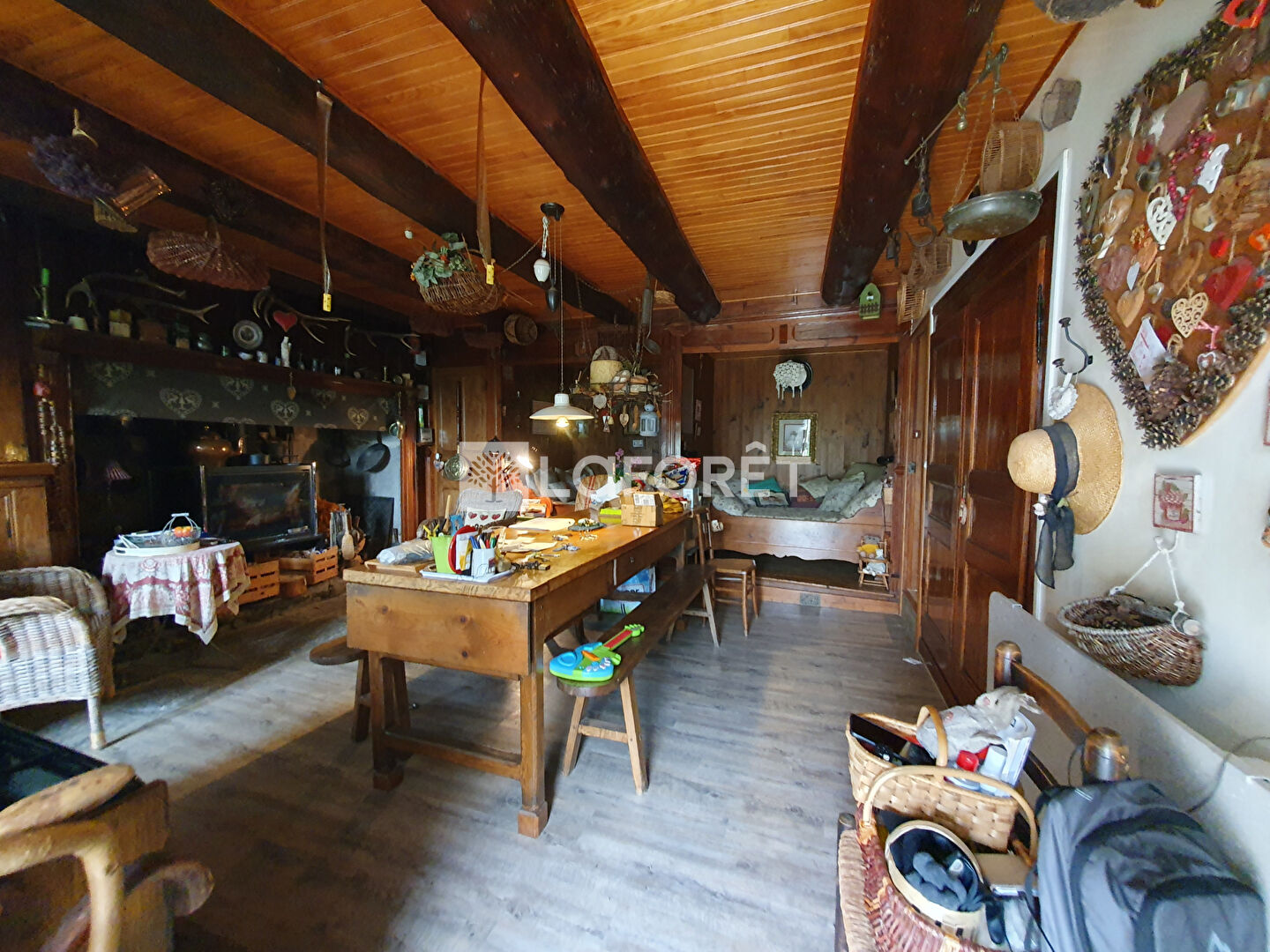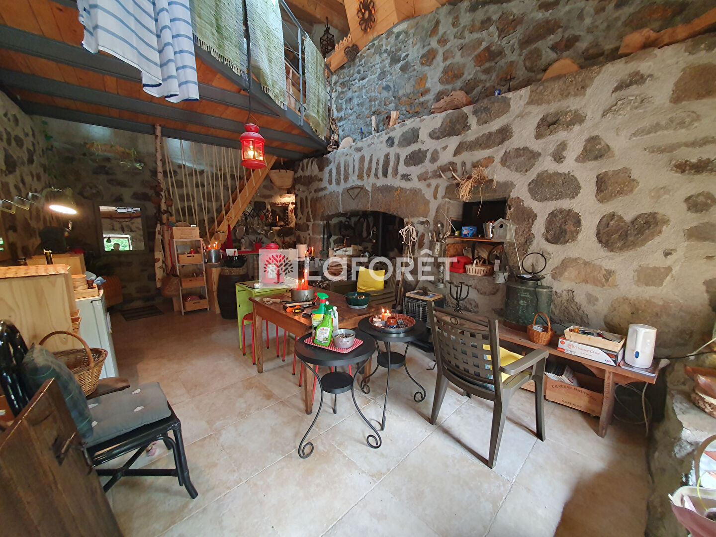 - Pièce de vie avec coin cuisine et insert bois,