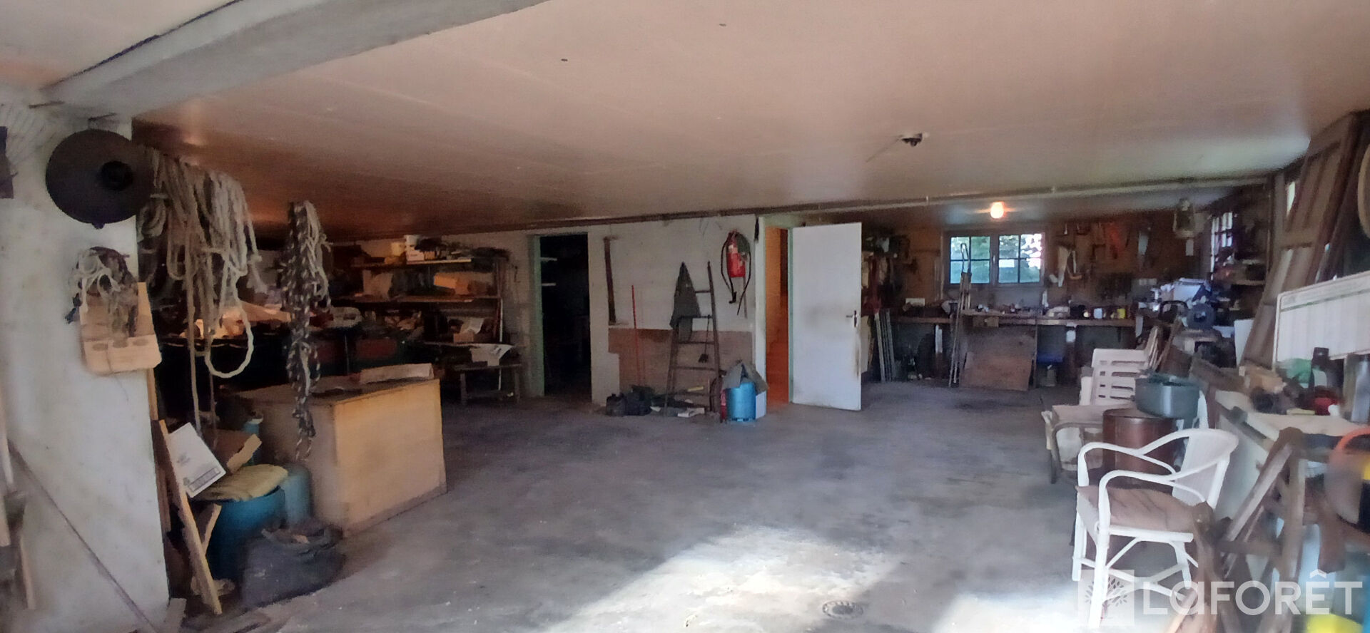 Au rez-de-jardin : un garage de 100 m² et une cave de 11 m².