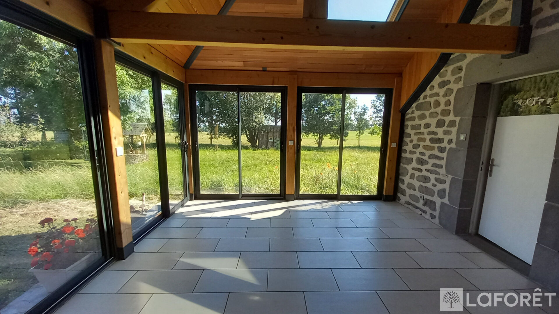 * La première d'une surface de 57 m² dispose d'une véranda de 17 m² donnant accès d'un coté au séjour avec petite mezzanine et poêle à granules, cuisine aménagée et équipée, salle d'eau, WC, et de l'autre une chambre ;