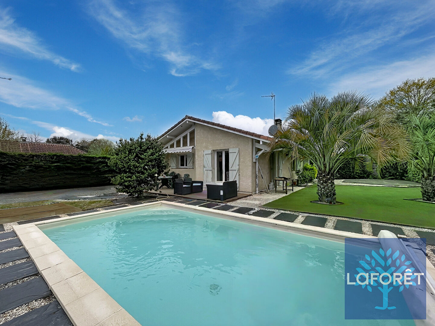 Implantée sur un terrain de 1 096 m², cette propriété dispose d'une piscine et d'un grand jardin au calme, un garage fermé et deux terrasses. Le terrain est en partie constructible, offrant une possibilité d'agrandissement ou de projet complémentaire selon vos besoins.