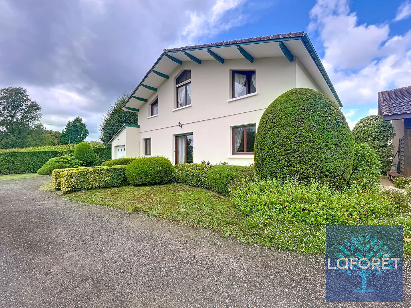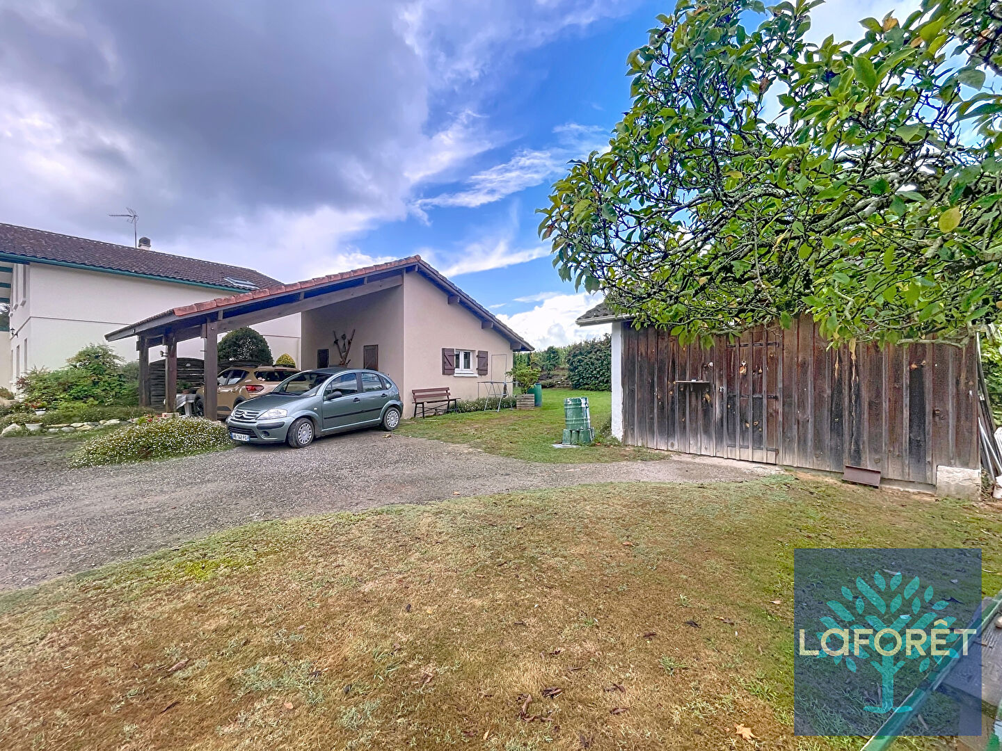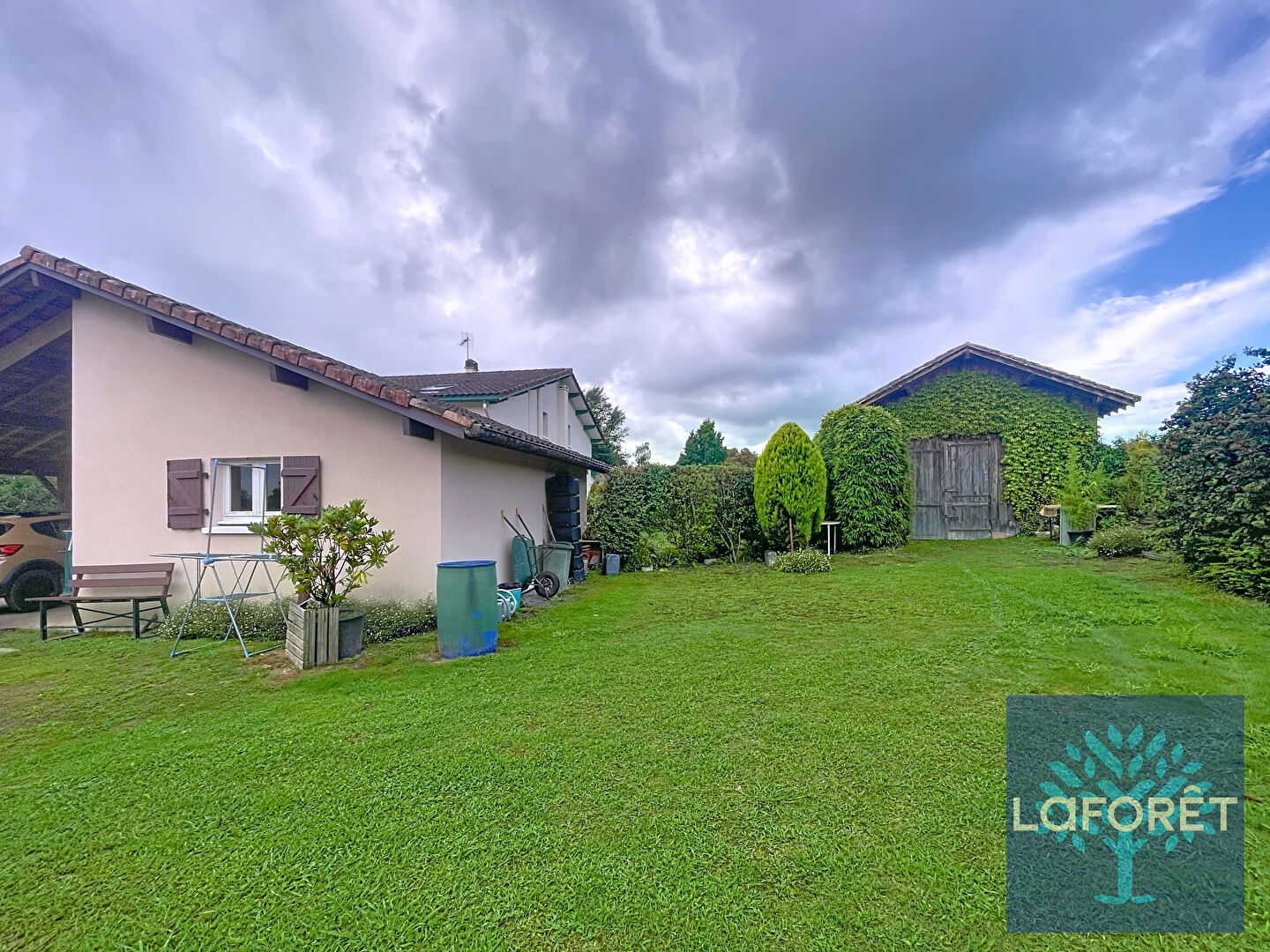 Le tout est implanté sur un vaste terrain arboré de 1570 m², offrant calme, nature et tranquillité.