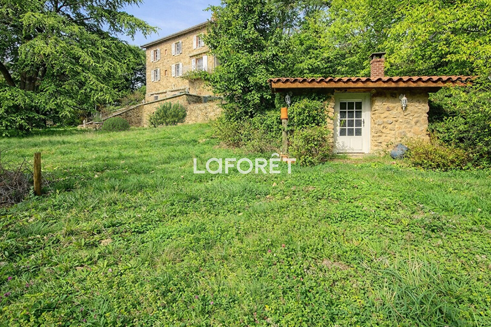 La propriété dispose également d'une petite dépendance en pierre pour le rangement, d'une dépendance en bois pouvant accueillir un véhicule et d'un atelier. Avec ses volumes généreux, sa lumière naturelle et son terrain exceptionnel, cette maison constitue un lieu rare qui allie charme de la pierre, confort et tranquillité absolue.