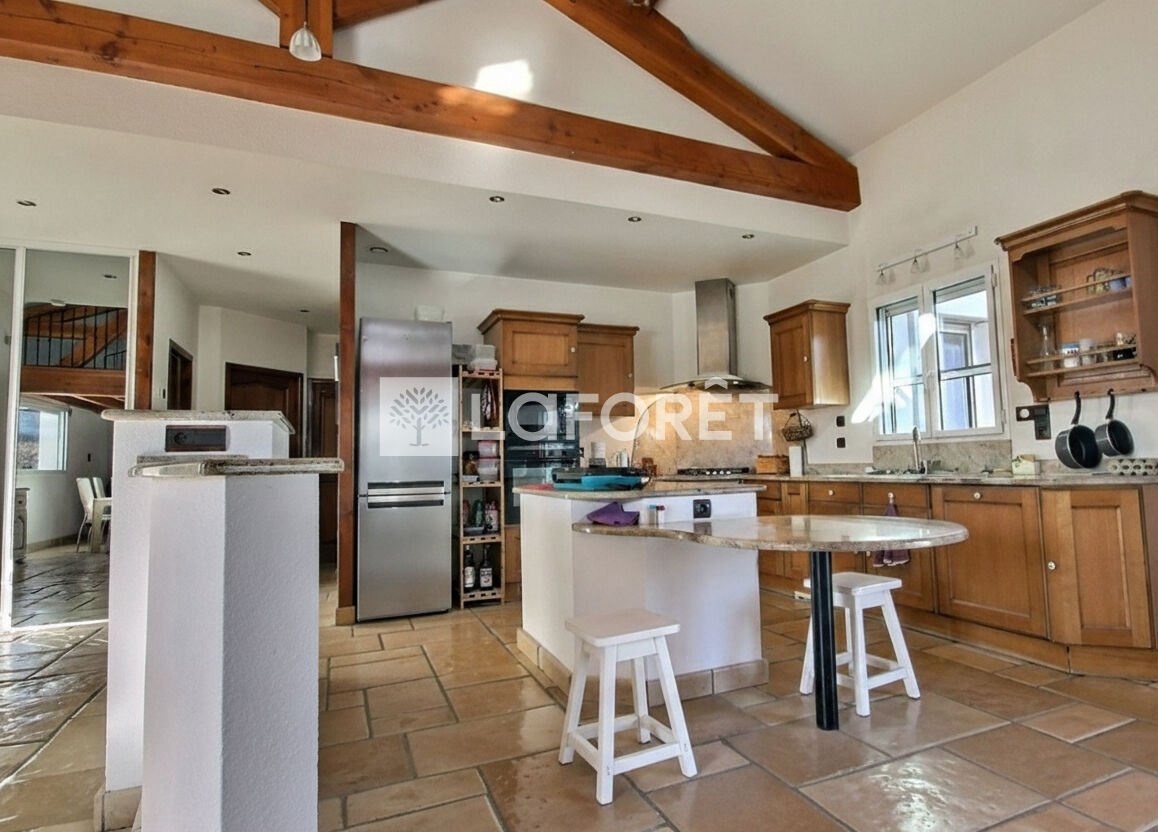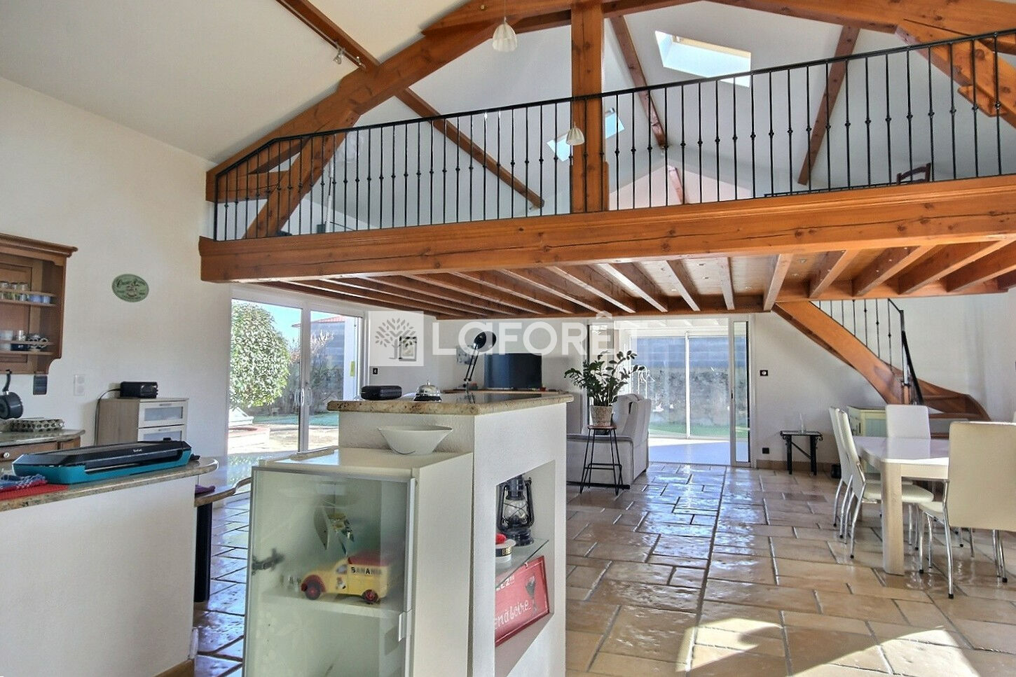 Elle offre une spacieuse pièce de vie d'environ 74 m² avec séjour cathédrale, baignée de lumière, créant une atmosphère chaleureuse et ouverte. La maison comprend trois chambres en rez-de-jardin, une mezzanine (possibilité d'une quatrième chambre), un bureau, une salle de jeux, une salle de bains avec baignoire et douche, une buanderie .