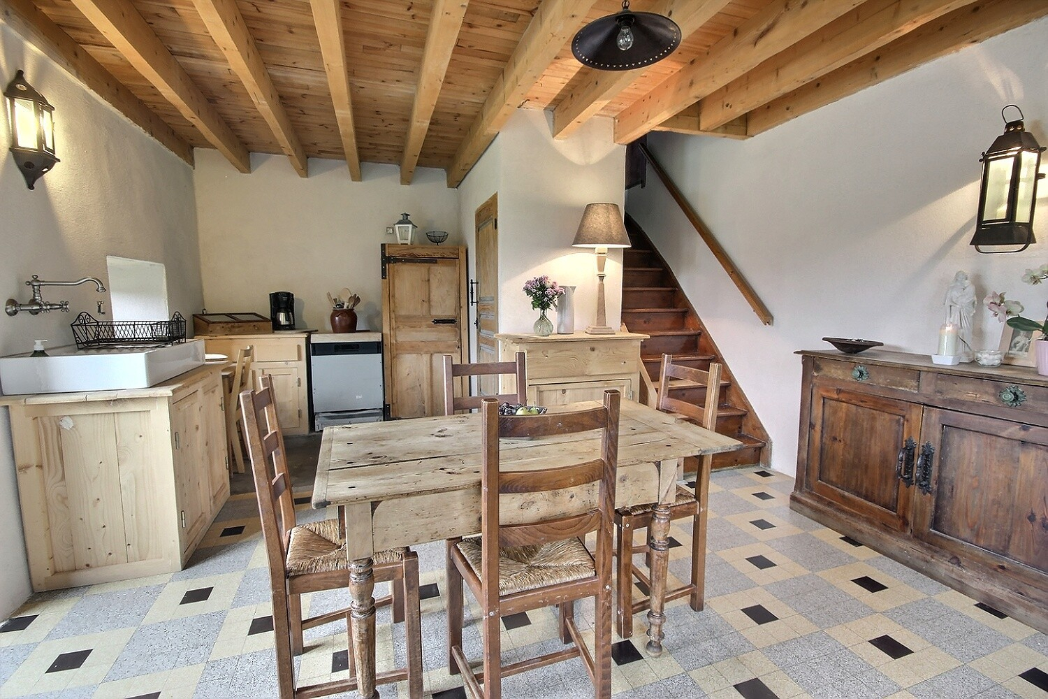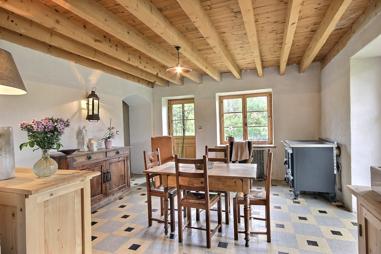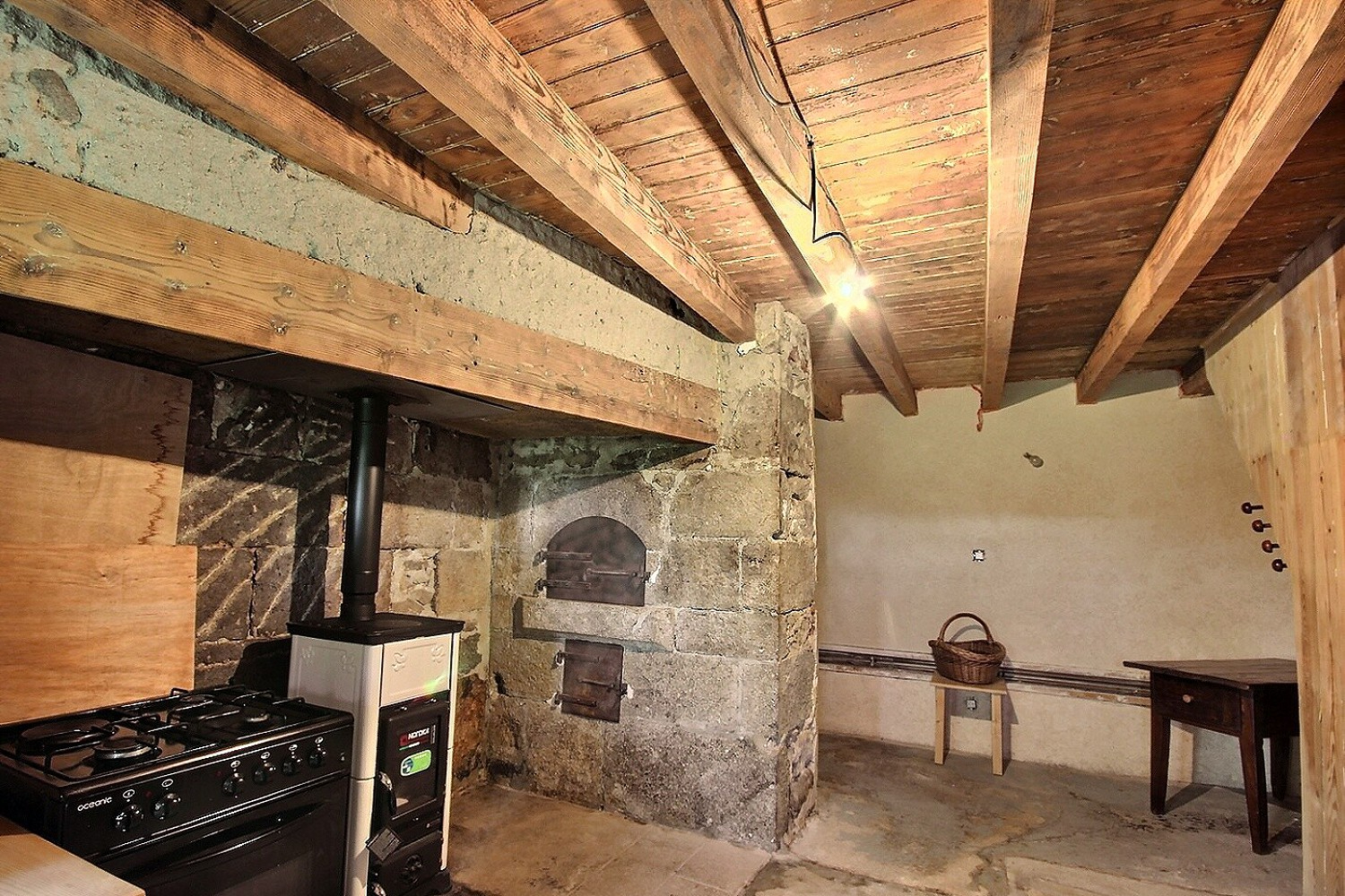 La partie habitation de 101.5 m² se compose d'un séjour cuisine avec cellier, d'une entrée avec cheminée ouverte (poêle à bois), une salle de bains, un WC indépendant. Au second et au 3ème étage, 4 chambres.