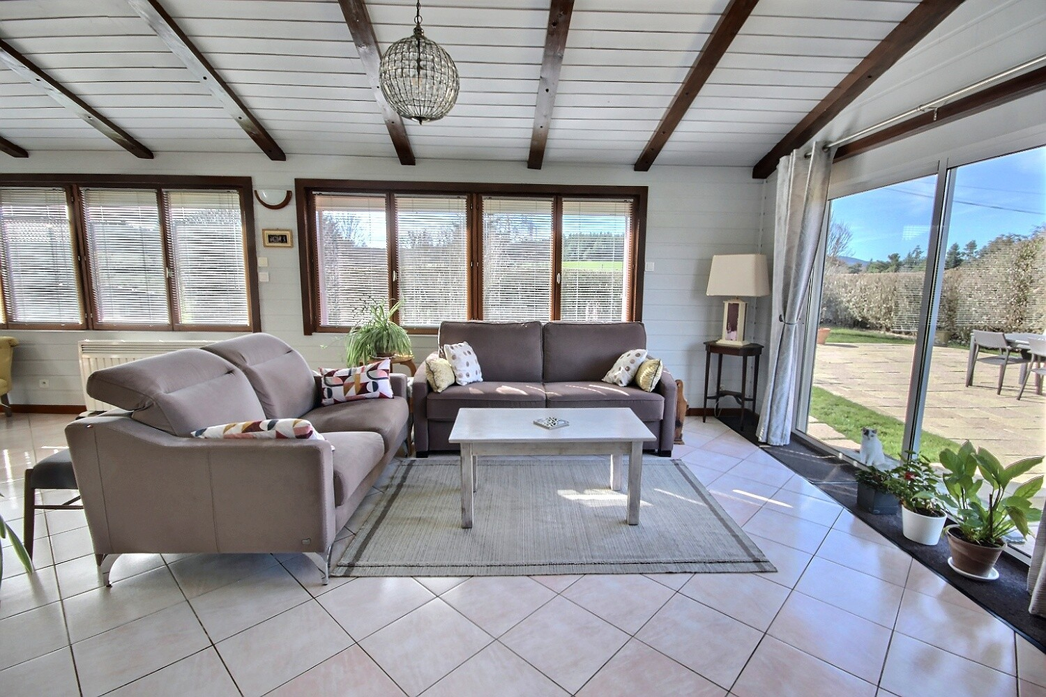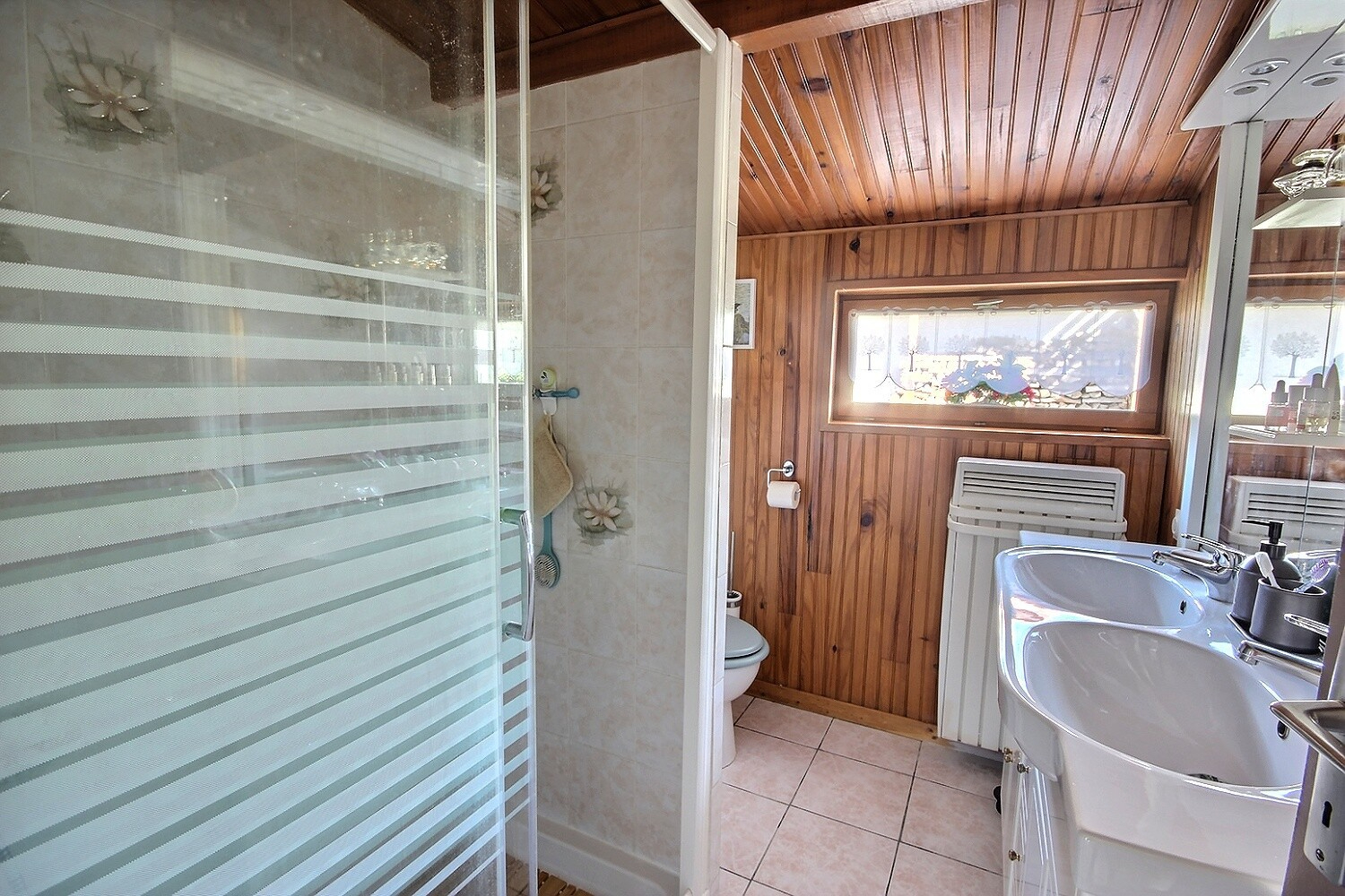 Pour parfaire ce bien, vous disposez d'un grand garage de 54 m² pouvant accueillir 3 véhicules. Chauffage bois et électrique, fibre, volets roulants électriques, tout à l'égout, ramassage scolaire...