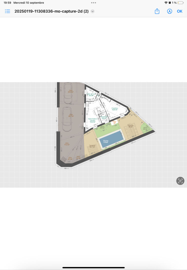 Clos de mur, ce terrain est idéal pour une petite habitation d'environ 70 m². Pour vous permettre de vous projeter, ci-joint un projet que vous pourrez réaliser ou modifier.