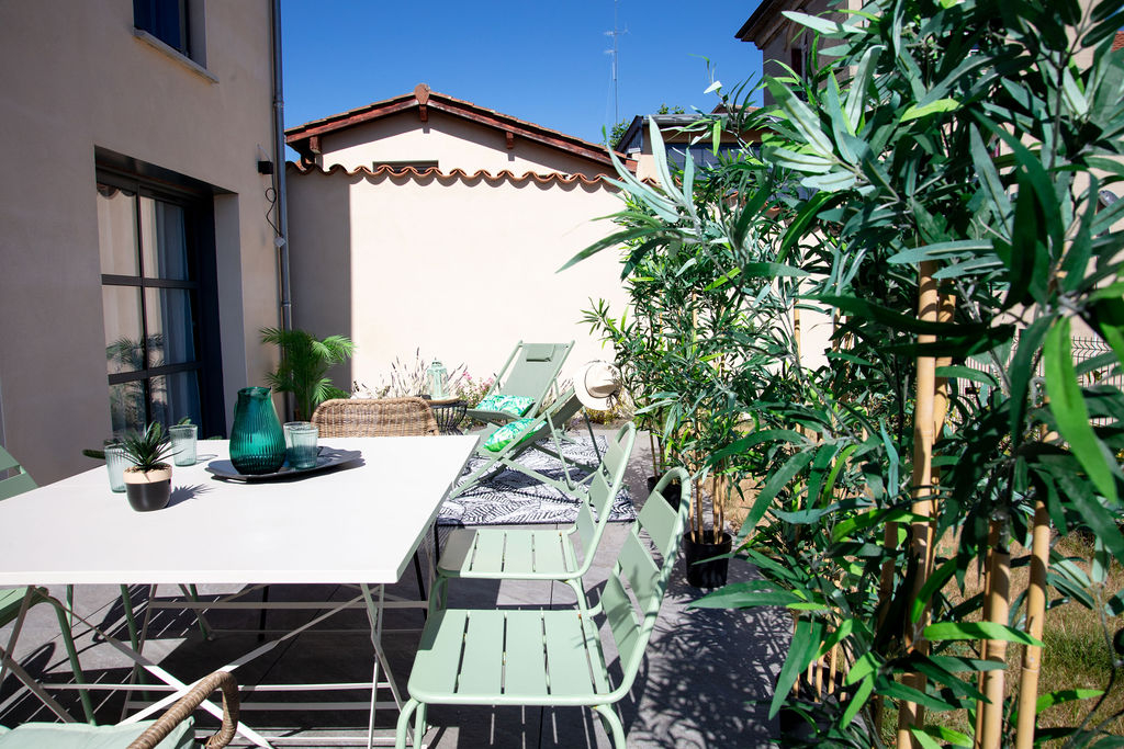Le terrain clos et paysagé, est optimisé. Il offre un espace extérieur suffisant pour les repas ou la détente, sans les contraintes d'entretien d'un grand terrain.
