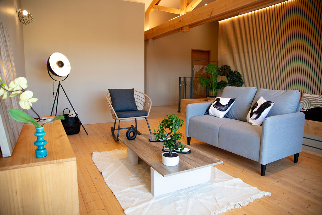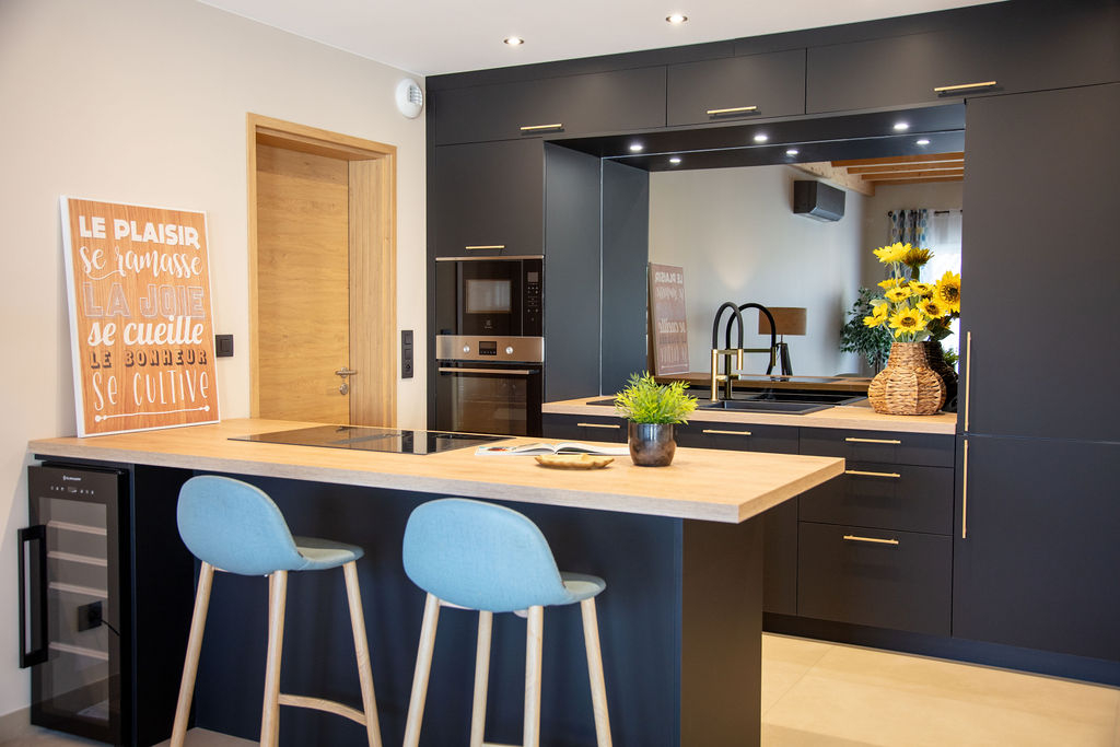 Dès l'entrée, découvrez une pièce à vivre baignée de lumière, ouverte sur une cuisine aménagée et équipée haut de gamme, moderne et fonctionnelle.