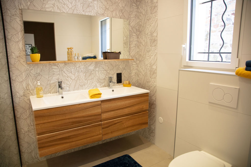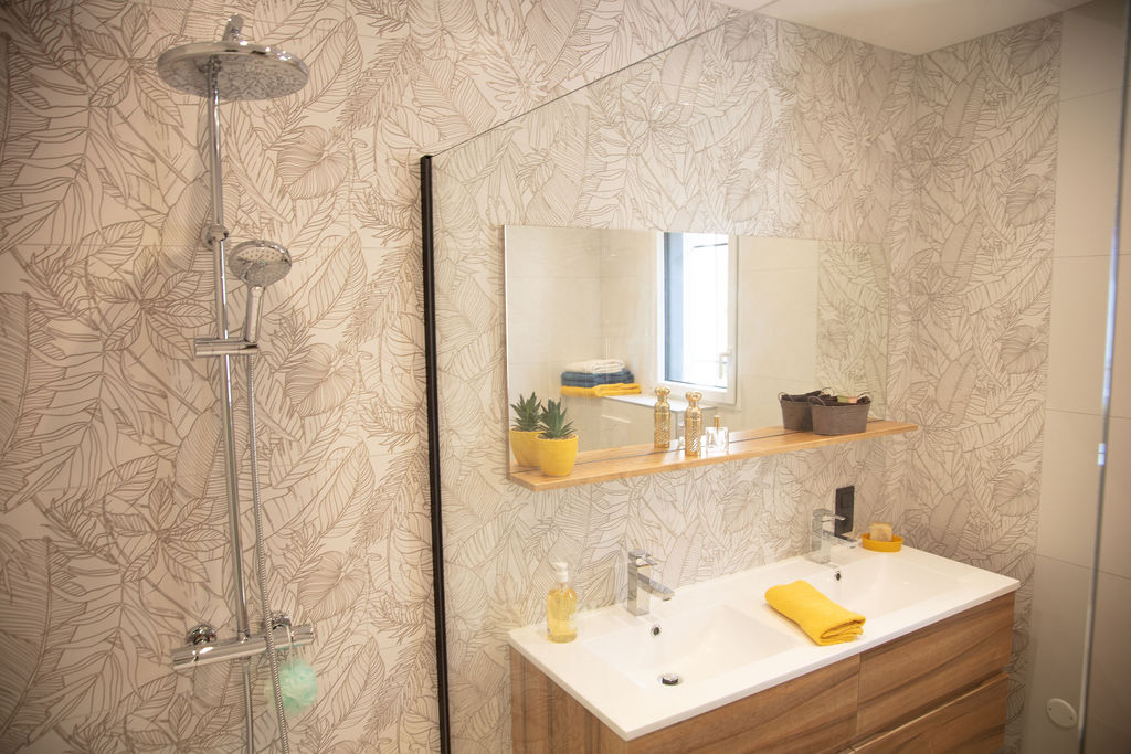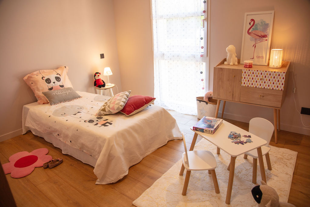 L''étage est parfait pour les enfants ou des espaces privés. Il se compose de trois chambres supplémentaires, d'une salle de bains, d'un WC indépendant, et d'un salon/espace bureau spacieux très lumineux de , idéal pour le télétravail ou la détente.