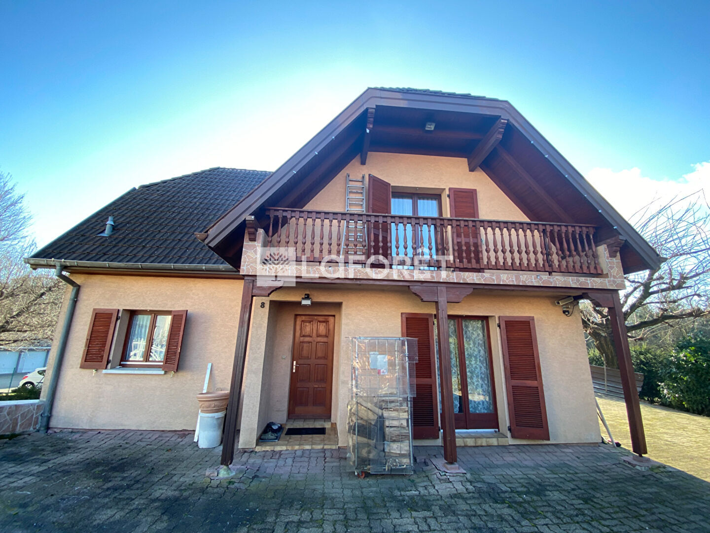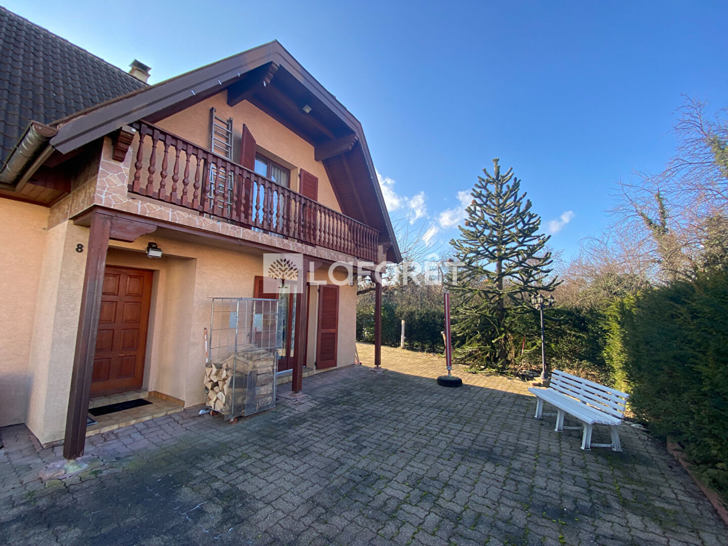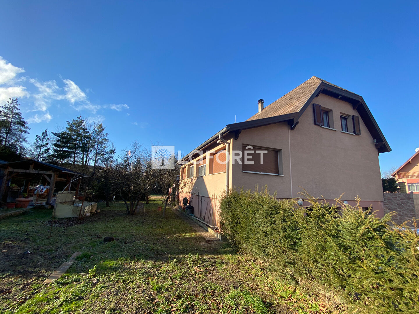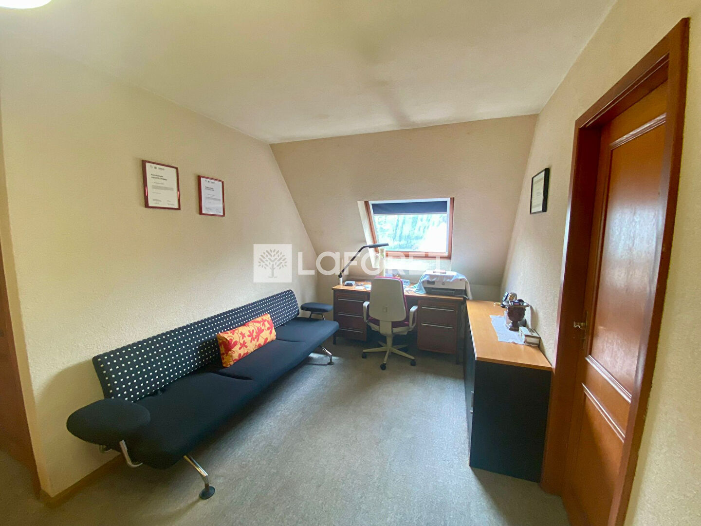 Exceptional location less than 500 meters from the border, charming house dating from 1989 on a pretty wooded and fenced garden. On the ground floor, you will discover an entrance, a living-dining room with fireplace and access to the terrace, a fitted and equipped independent kitchen, a veranda, a bedroom as well as a bathroom with toilet; enough to offer you the possibility of living on one level. Upstairs, a beautiful mezzanine with an office space as well as three additional bedrooms, one of which is extended by a balcony and a bathroom including a second toilet complete this level. Full basement, two garages, all on more than 7 acres of land. No major work but still plan for some refreshments.