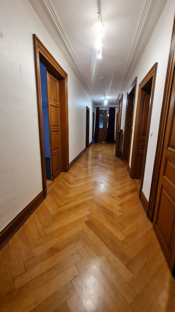 Rare! Superb apartment in the Rebberg of Mulhouse, 30 minutes from Basel! On the first floor of a house of character, large apartment with a surface area of 212sqm composed of a very large entrance with cupboards, a living room, a fitted and equipped kitchen, an office, a dressing room, three bedrooms, an office, a bathroom with bathtub and shower and a separate toilet. Parquet floor, fireplace, large terrace with garden view, cellar and garage. Central heating.
