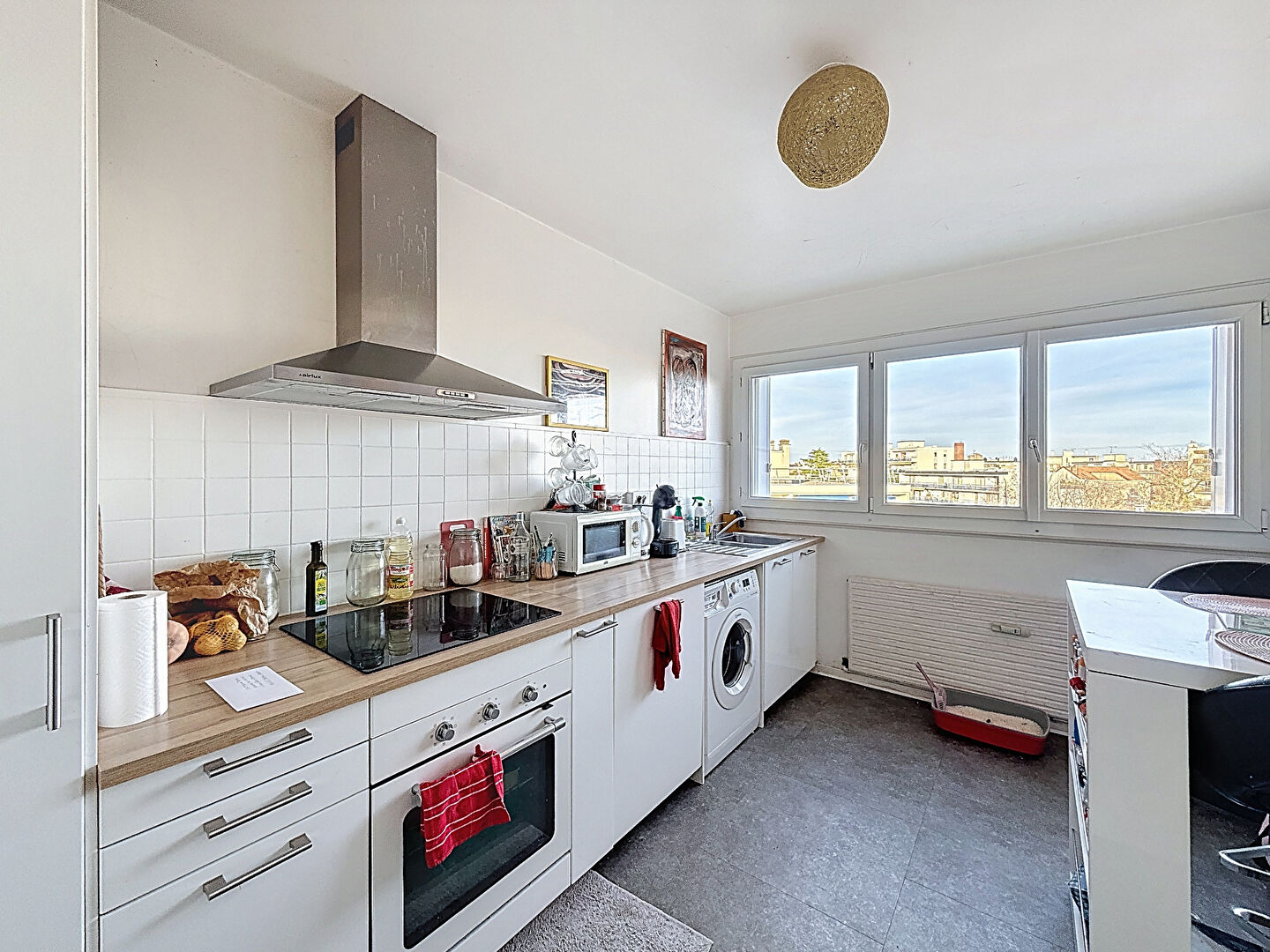 Dans une copropriété très bien entretenue, un appartement 2 pièces en dernier étage avec ascenseur composé d'une entrée avec placard, d'un séjour lumineux avec vue dégagée, d'une grande cuisine dinatoire, d'une chambre avec balcon, d'une salle de bains, toilette séparé.