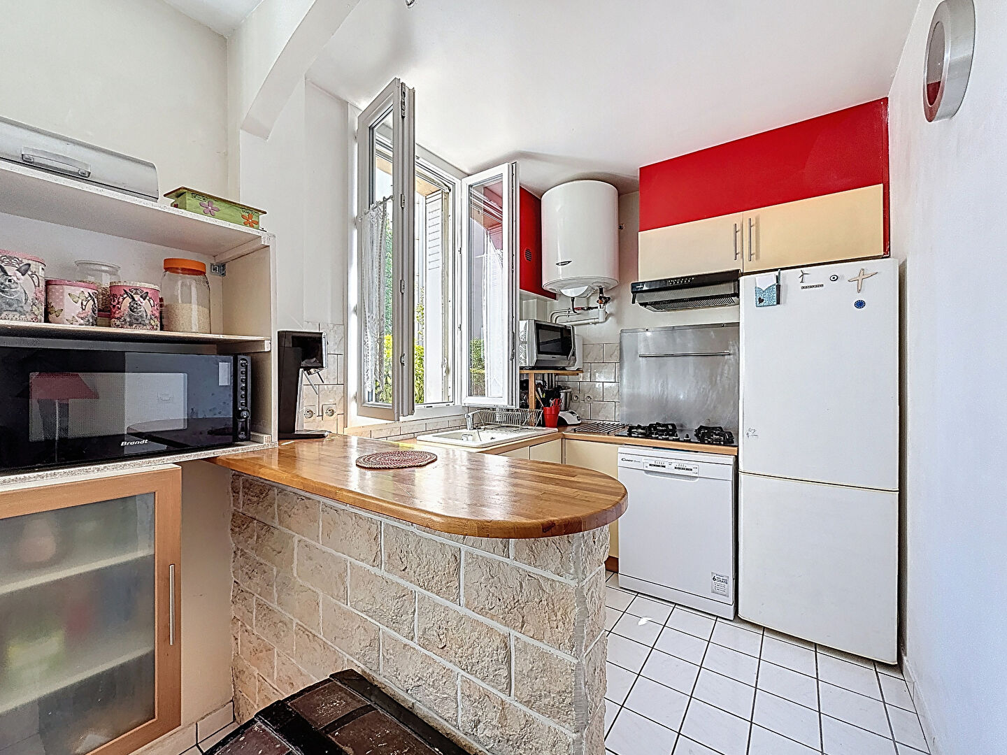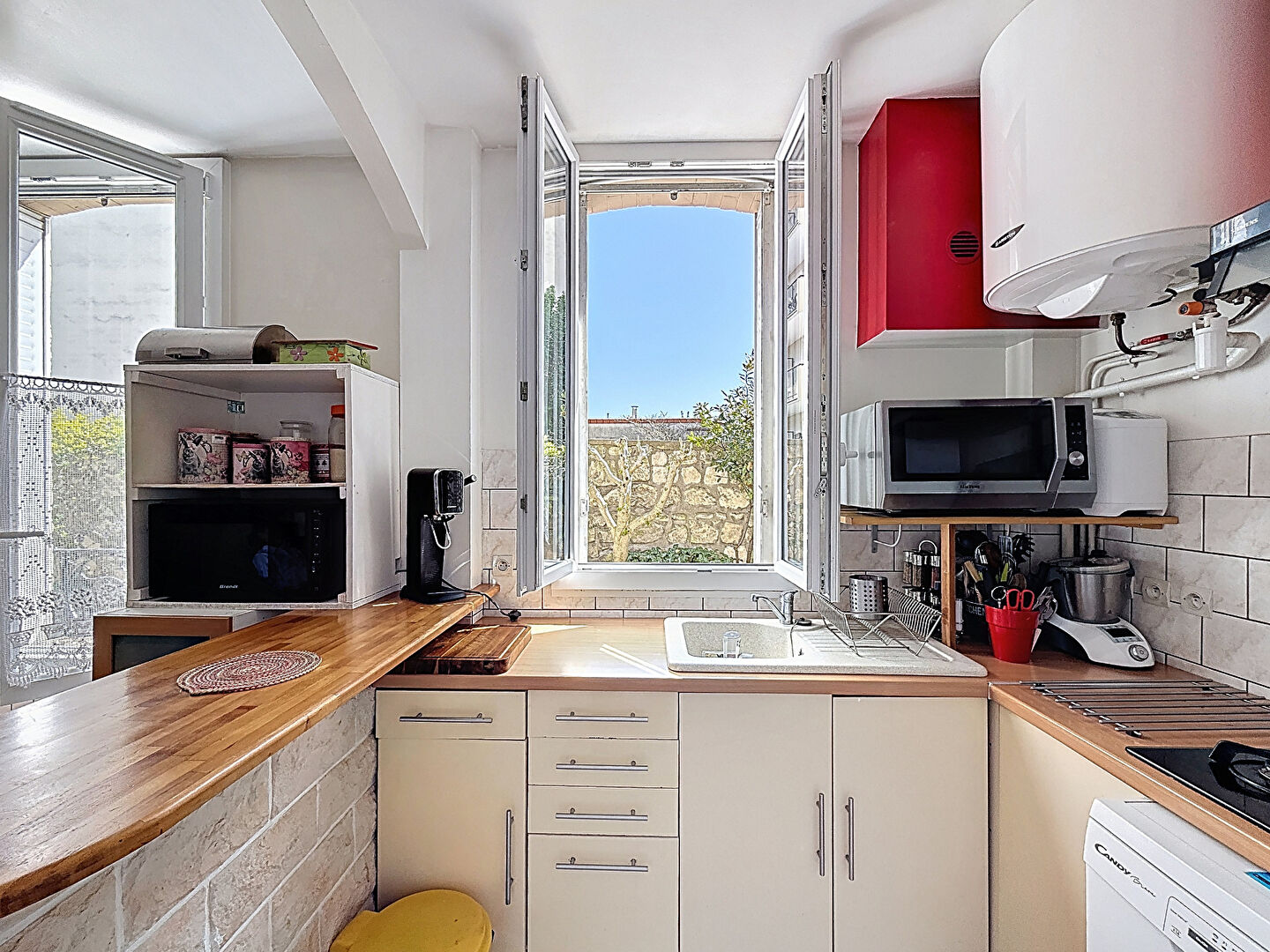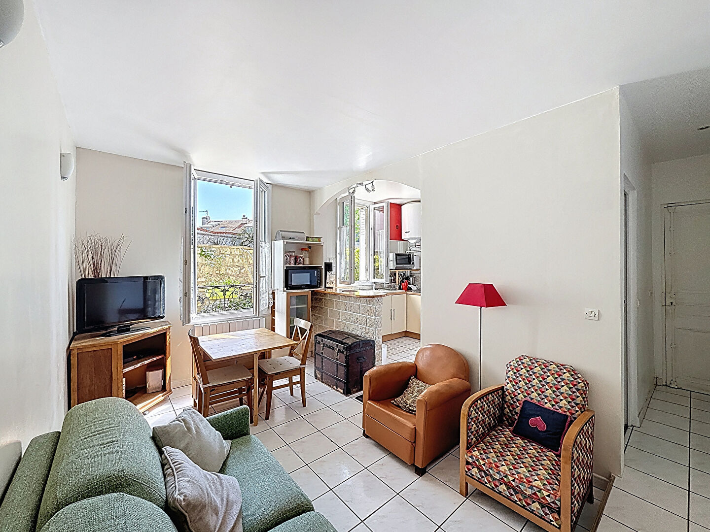 Dans une petite copropriété bien entretenue, appartement 2 pièces de 37,31m2 en rez-de-jardin comprenant : entrée, séjour avec cuisine ouverte, une chambre, un dressing, une salle d'eau avec WC.