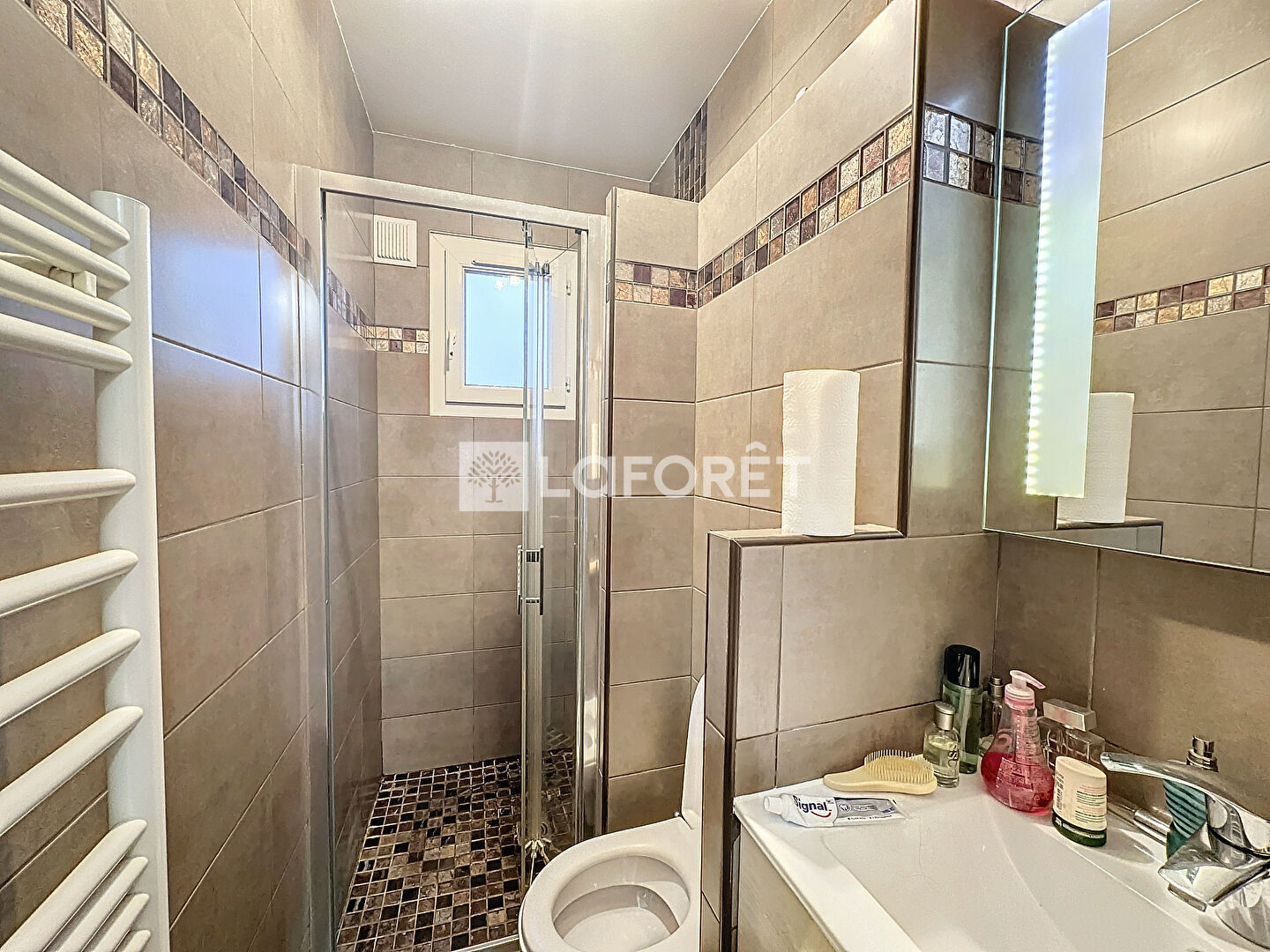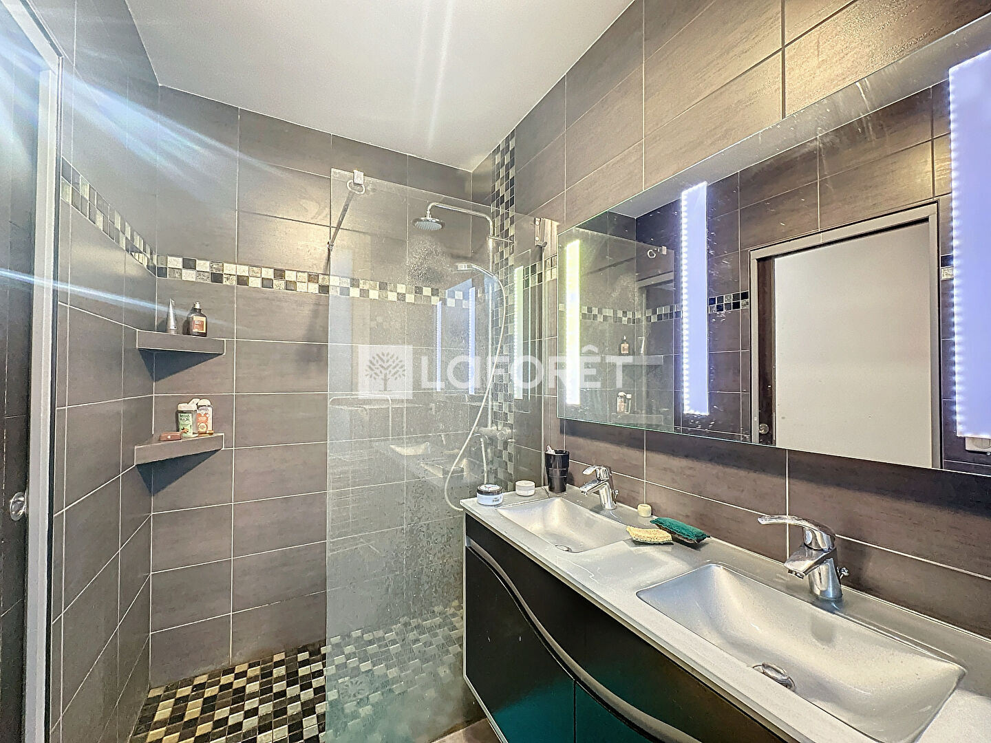 Le duplex possède également un séjour double, une grande chambre, une cuisine fermée, une salle d'eau et WC . La suite parentale se trouve à l'étage, avec sa salle de bain et WC ainsi qu'un espace dressing avec de nombreux rangements.