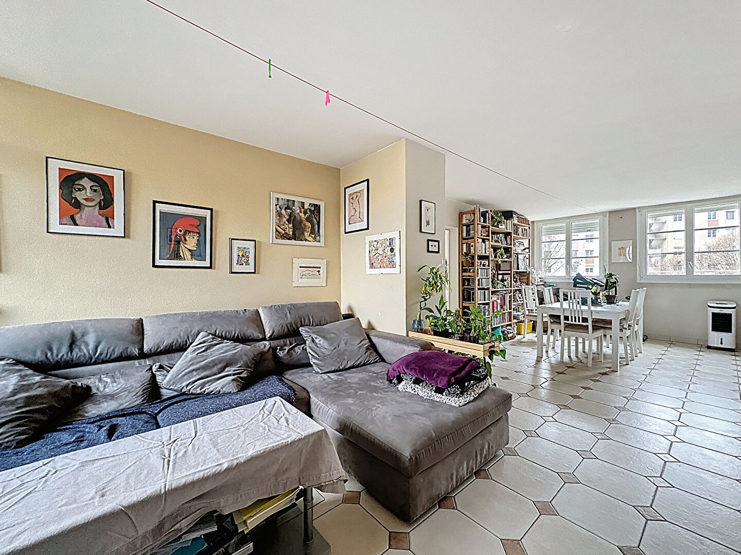 Il se compose d'une entrée, d'un double séjour, de deux chambres, d'une chambre/bureau complémentaire (5.78m2), d'une cuisine indépendante (possibilité US), d'une salle d'eau et d'un WC séparé.