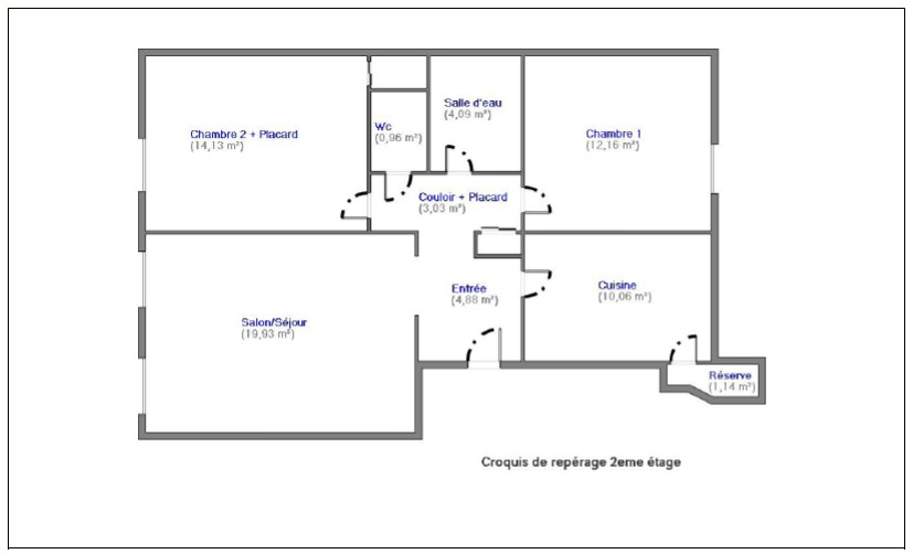 Il se compose d'un magnifique séjour avec accès sur un balcon Exposé plein SUD de 1.5 m2, d'une cuisine séparée équipée, de 2 chambres, d'une salle d'eau et d'un W.C séparé.