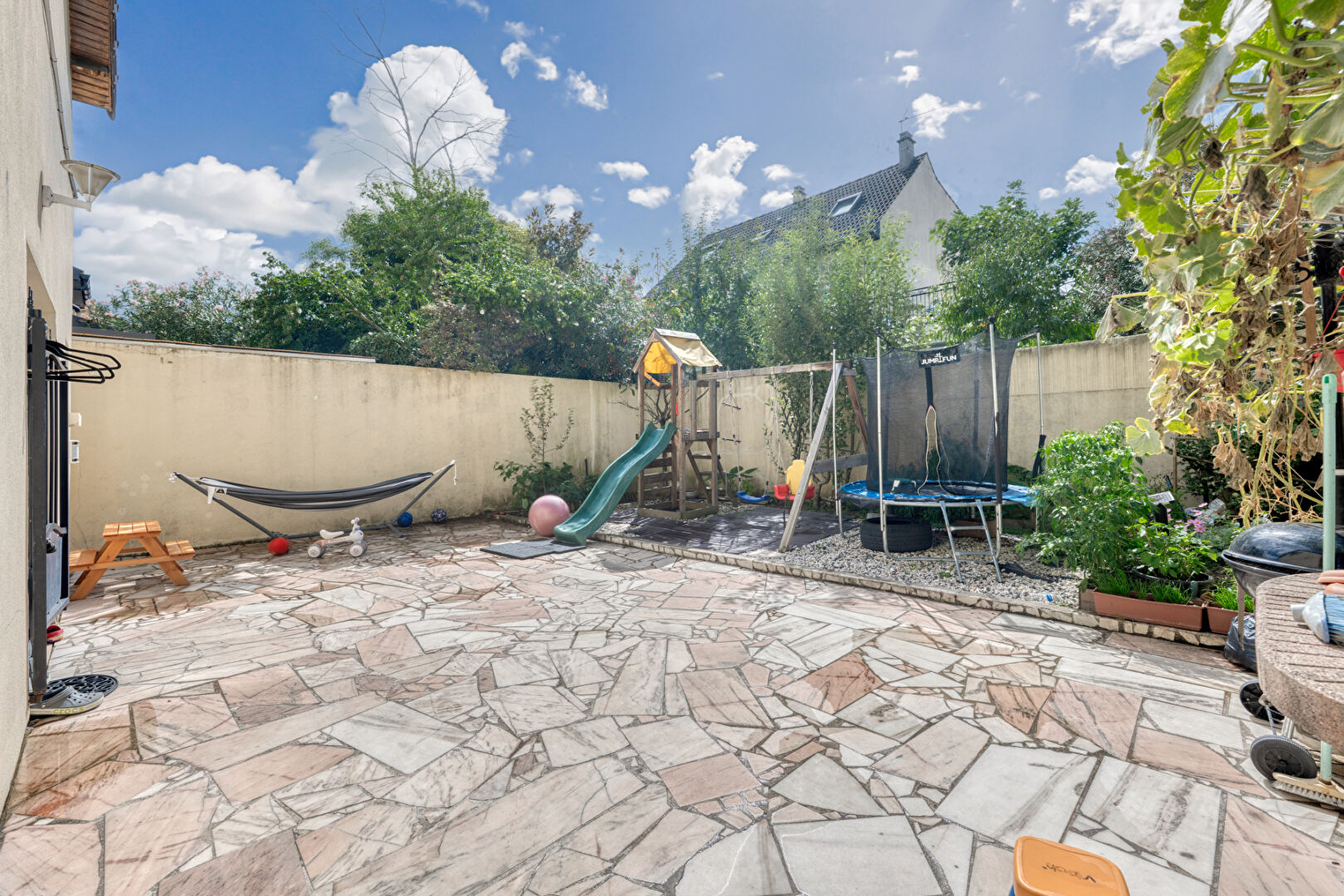 Cette maison offre un cadre de vie agréable, à proximité des commerces, écoles et transports.