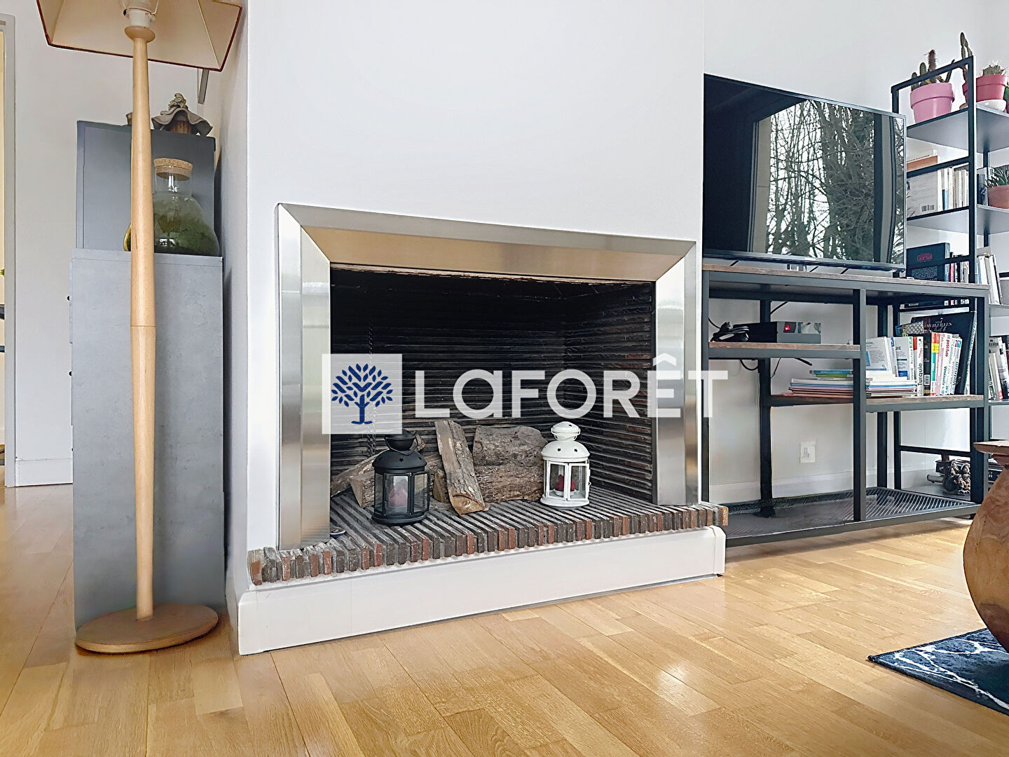 Le séjour de 25 m², exposé sud-ouest, bénéficie d'une double exposition exceptionnelle offrant des vues dégagées sur le petit bois et la mairie de Bailly en fond, et s'agrémente d'une cheminée en parfait état de fonctionnement, apportant chaleur et caractère à l'ensemble.