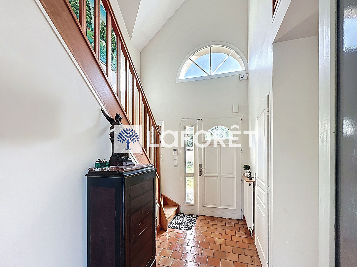 Elle s'ouvre sur une entrée cathédrale élégante avec dressing et WC invités, menant à une cuisine dinatoire conviviale ouverte sur le jardin, ainsi qu'à une chambre avec placards et salle de douches.