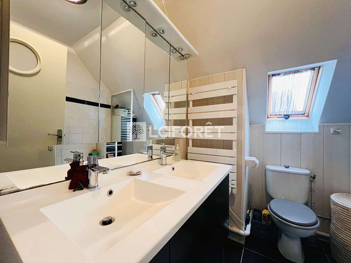 À l'étage, l'espace nuit dessert trois chambres, dont une chambre parentale avec espace dressing, ainsi qu'une salle de bains avec WC.