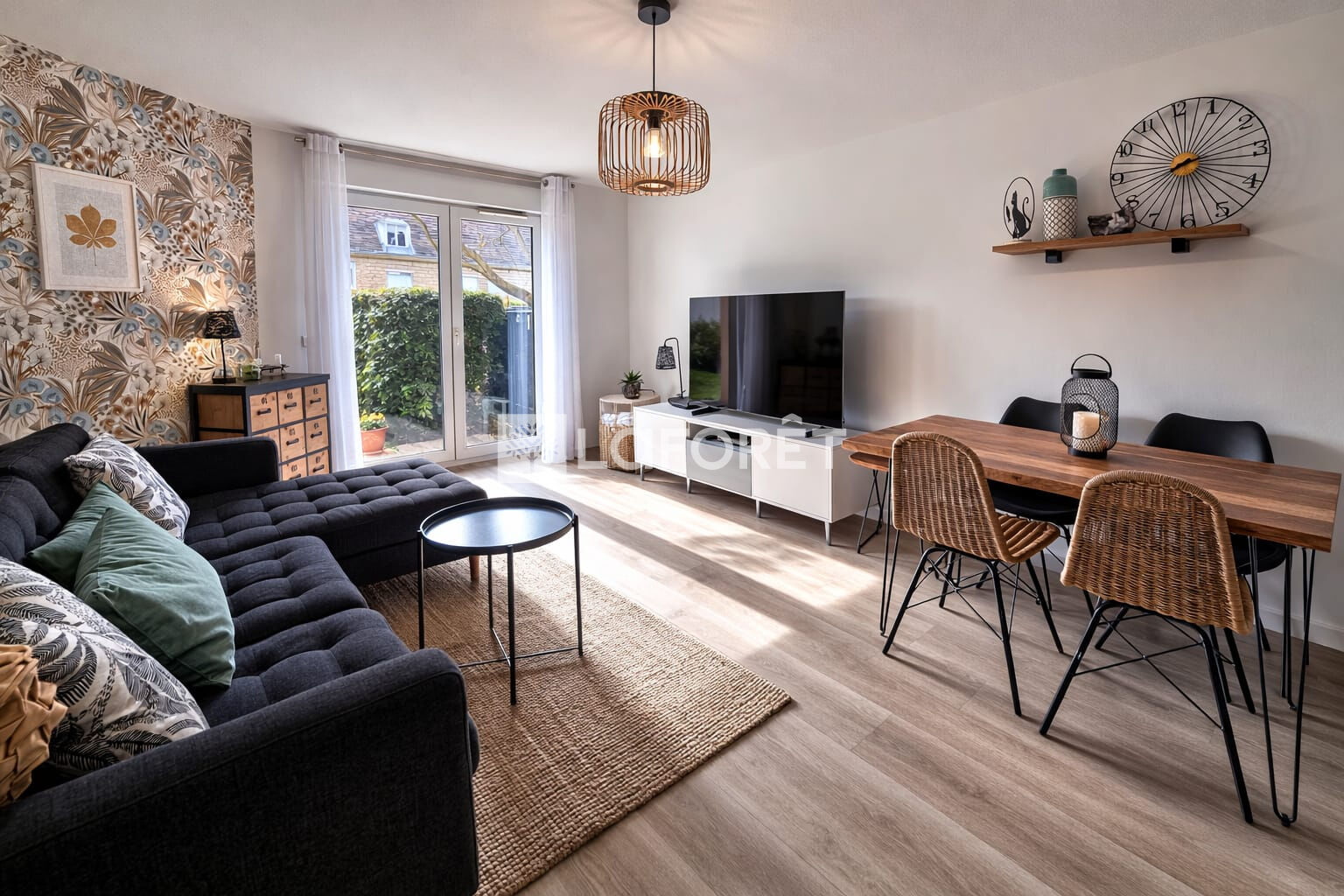Dès l'entrée, vous serez séduit par sa luminosité. Le séjour s'ouvre harmonieusement sur un superbe jardin et terasse exposés plein sud, véritable prolongement de l'espace de vie et cadre idéal pour profiter des beaux jours en toute tranquillité. La cuisine séparée allie fonctionnalité et confort. L'espace nuit se compose de deux chambres avec placards, d'un dressing, d'une salle de douche moderne et de WC indépendants.