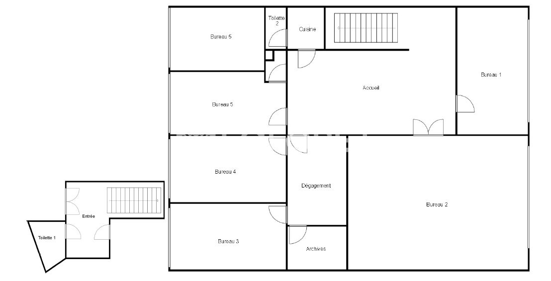 La distribution est à la fois fonctionnelle et qualitative, comprenant plusieurs bureaux, une salle de réunion, une salle informatique, deux WC et une kitchenette, assurant confort et efficacité au quotidien.
