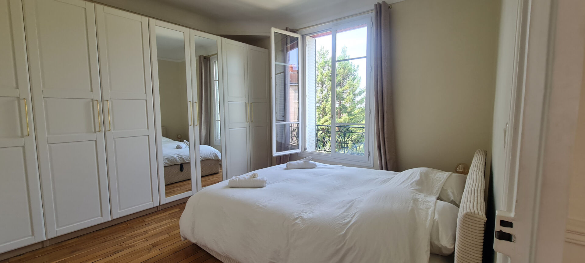 Tout le confort pour vivre proche du coeur de ville dans un cadre de standing: dressing, canapé, tapis, literie...